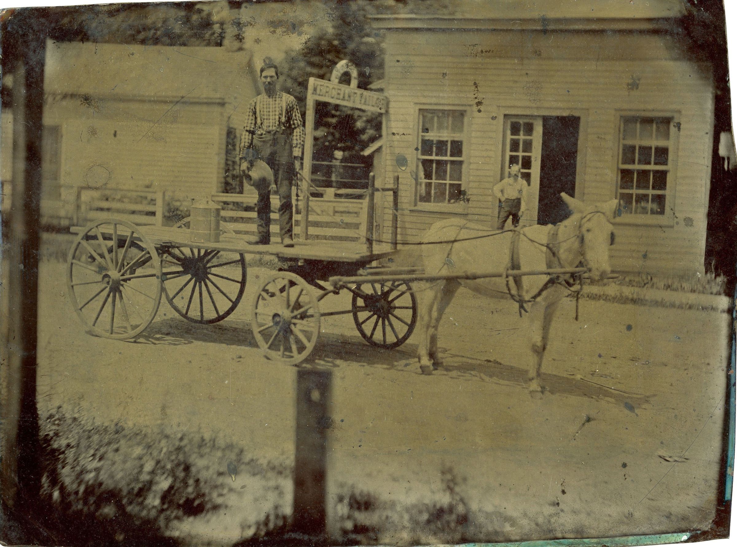 John H. Bower's Merchant Tailor Shop. Horse and Cart. 1903. Unknown exact location, possibly 208 Monroe, or 323 Monroe. Was a William C Bower tailor in 1901&1903. Merchant tailor appears in 1905 directory, Bower is listed as a tailor through 1927.Cataloged By