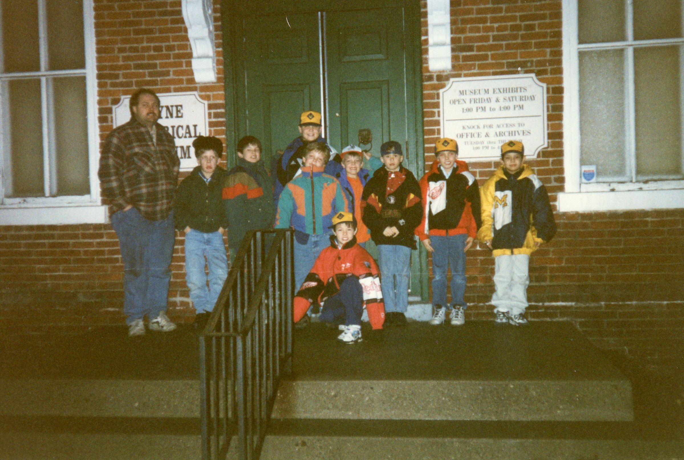 Bear Cub Scouts Pack 724 Front Row: Andrew Crawford. Middle Row Left to Right: Den Leader Chuck Hall, Joe Riley, Chris Earnist, Brandon Hall, Justin Hall, Kyle Lehman, Brian Susewitz, Julian Bermidez. Back Row: Eric Vojtkofsky.