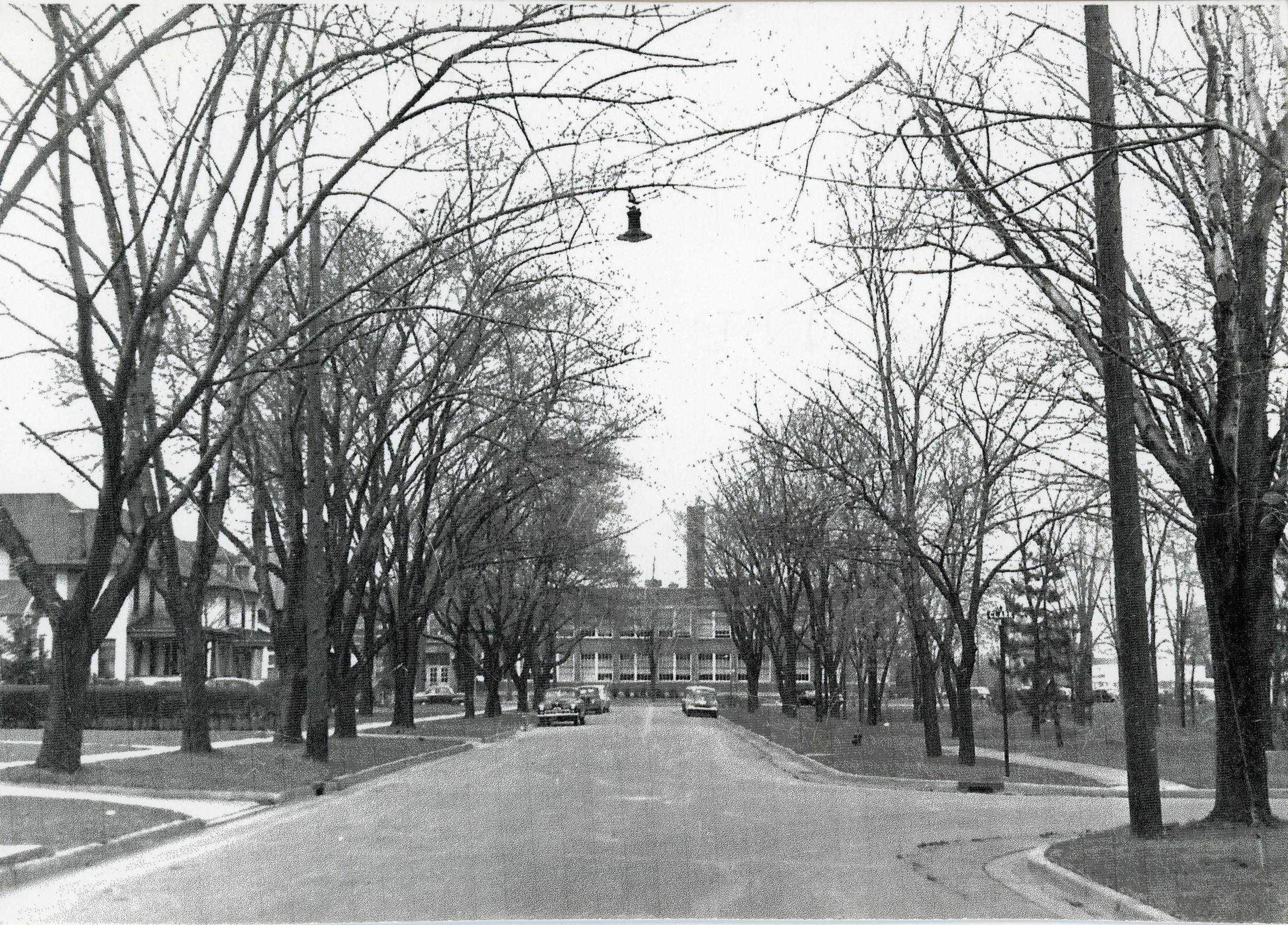 Park Street at Clark Street, looking West to Williams. Old Wayne High in background.