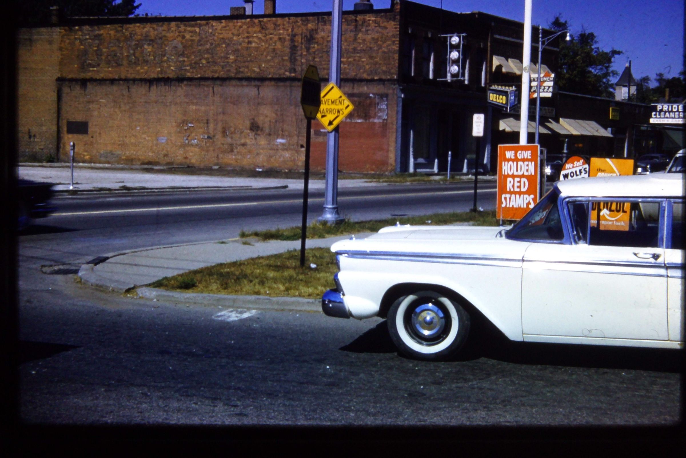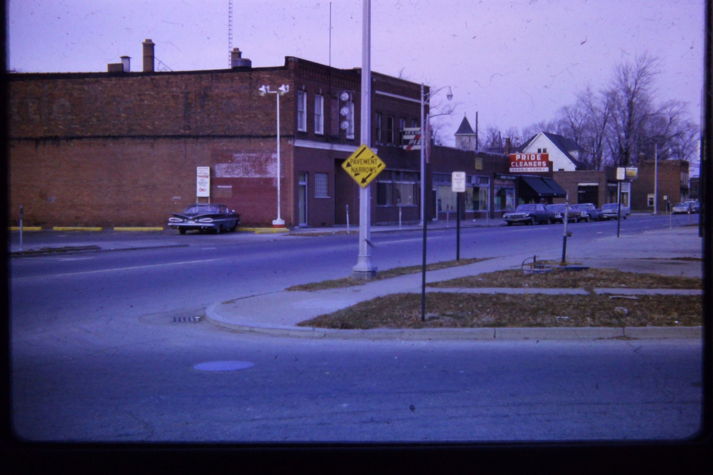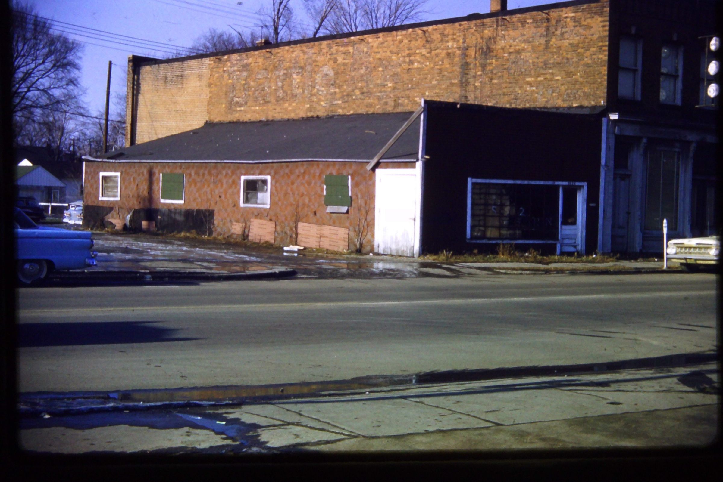 NE corner Brush and Monroe, looking NW at 3930 and 3924 Monroe. Oddfellows building.