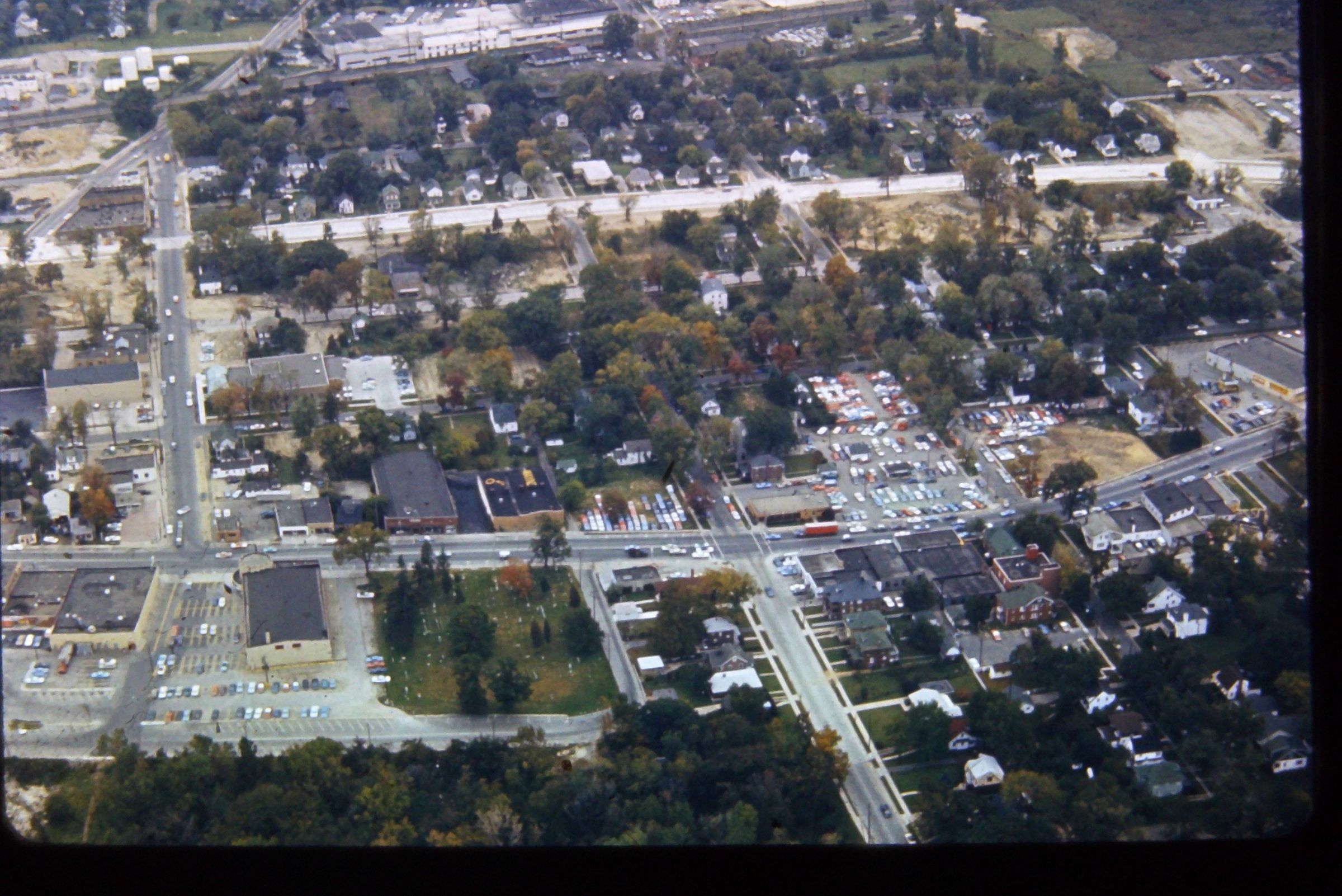 Aerial over Elizabeth St. and Michigan, looking SW. Mid 1960s. Urban Renewal