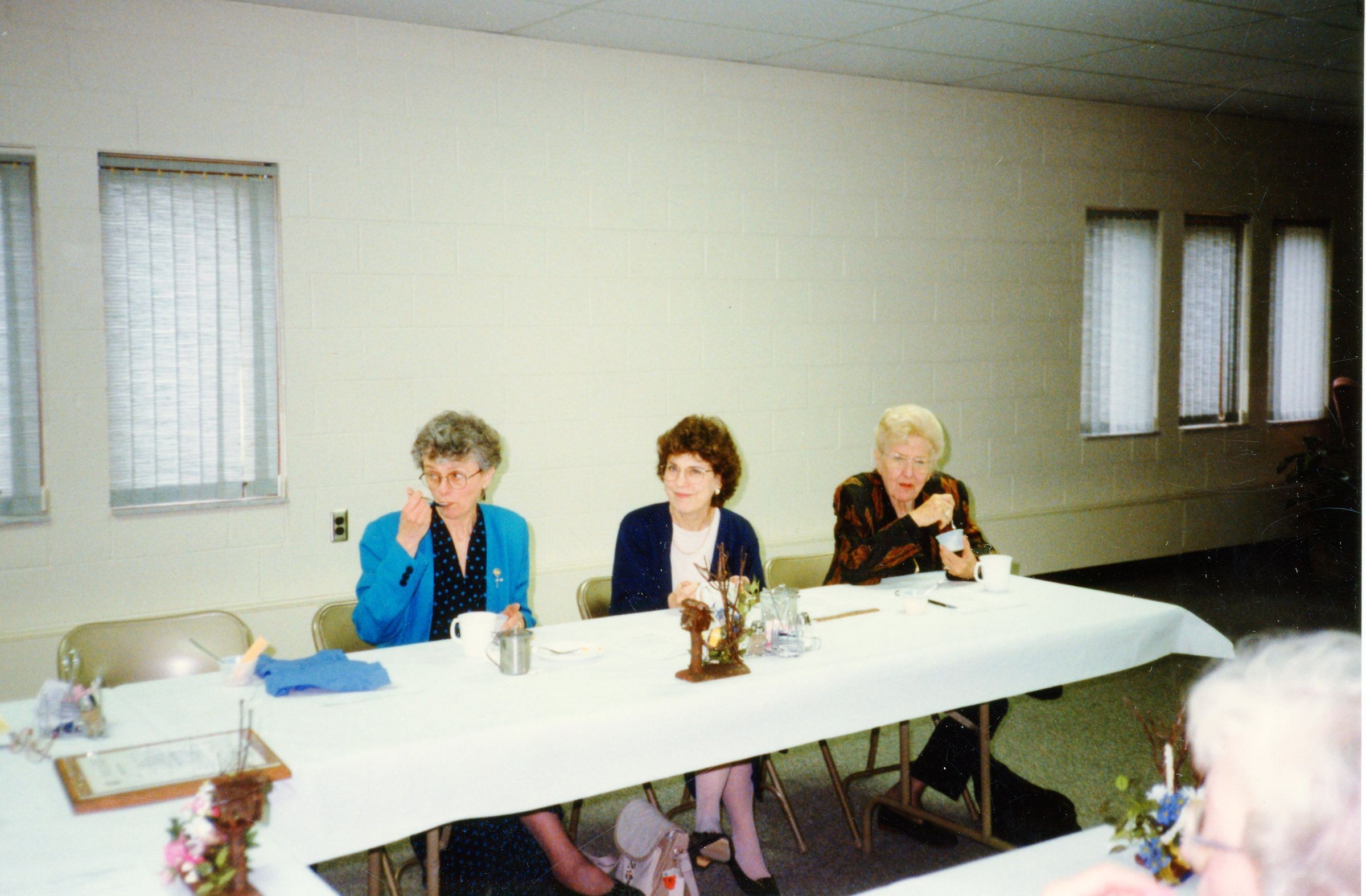 Doris Nall, Donna Edwards, Ruth Storch. at Soroptimist meeting in Methodist Church, May 1997