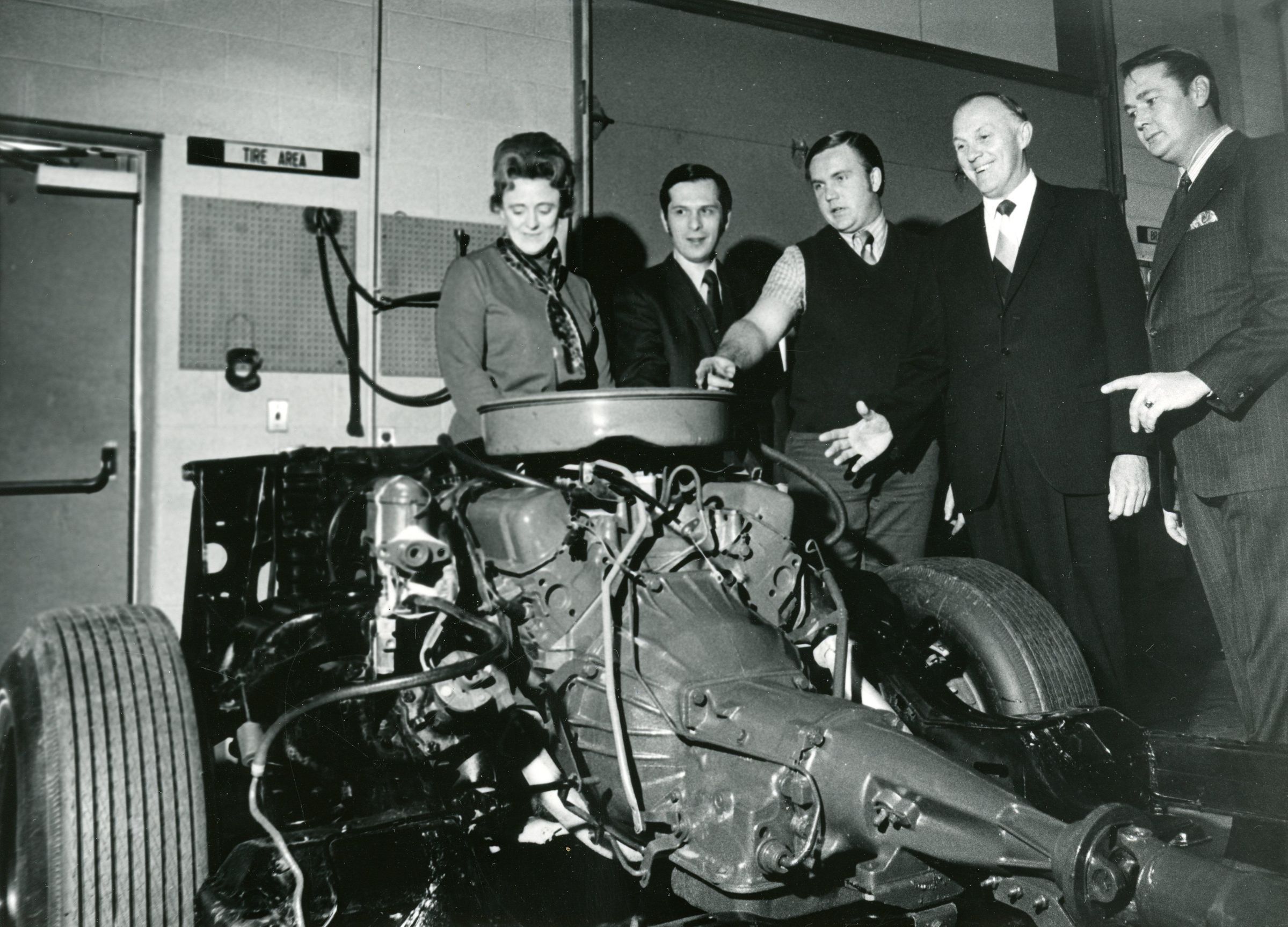 Wayne Memorial High School, First Chassis to WMHS 1971. Unknown, Tom Svitkovich, Herb Wilson (auto teacher), Mr. Demmer, unknown.