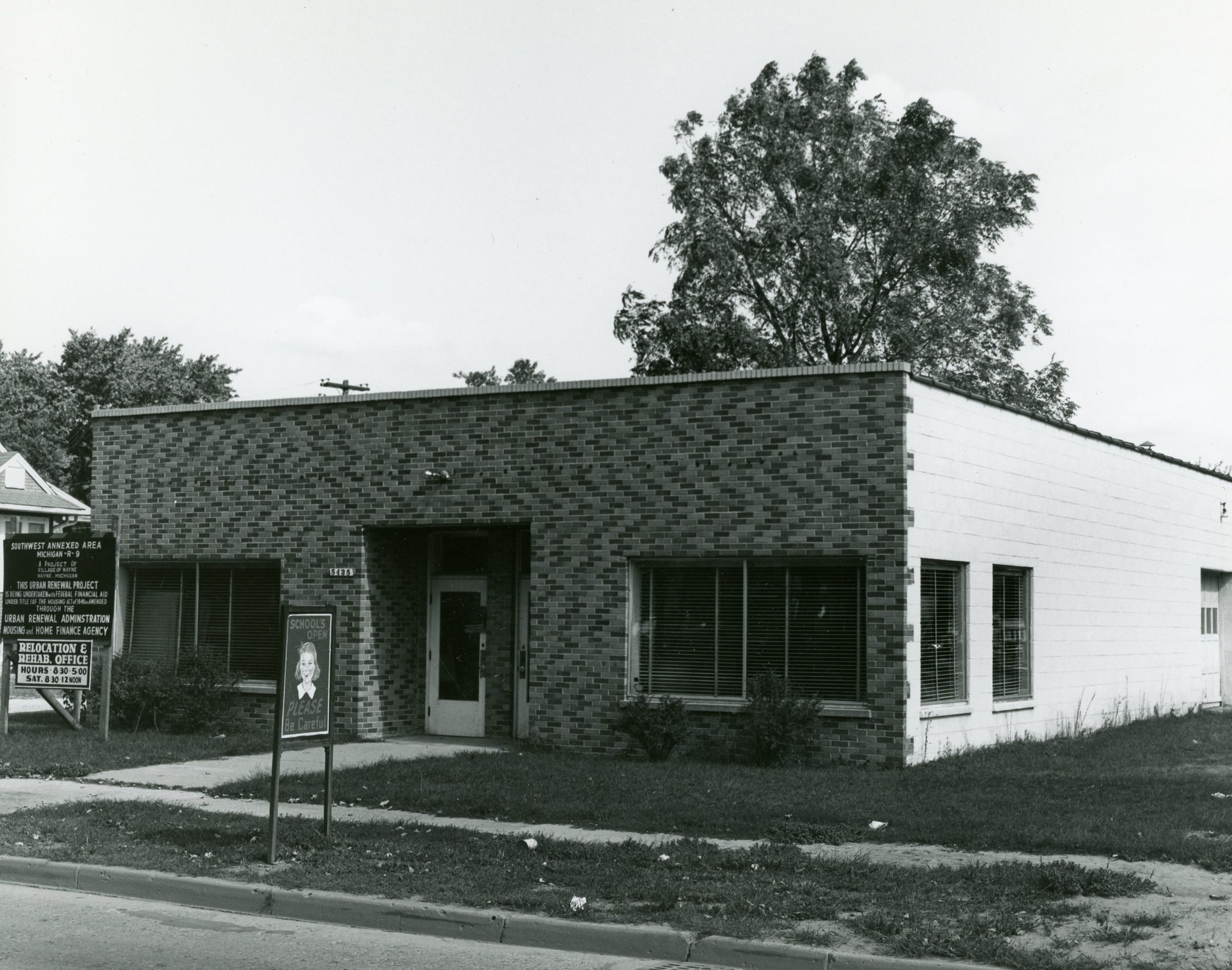 5435 & 5455 S. Wayne Road. NE corner Wayne and Glover. Urban Renewal Relocation and Rehab offices, 1961. R-9.