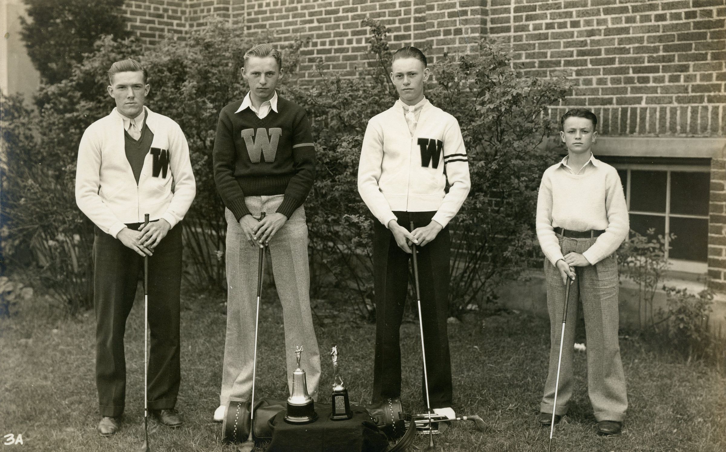 1935 WHS Golf State Champs Class B. L to R: Elmer Prieskorn, John Renauer, Edsel Holmes and James Carouthers.