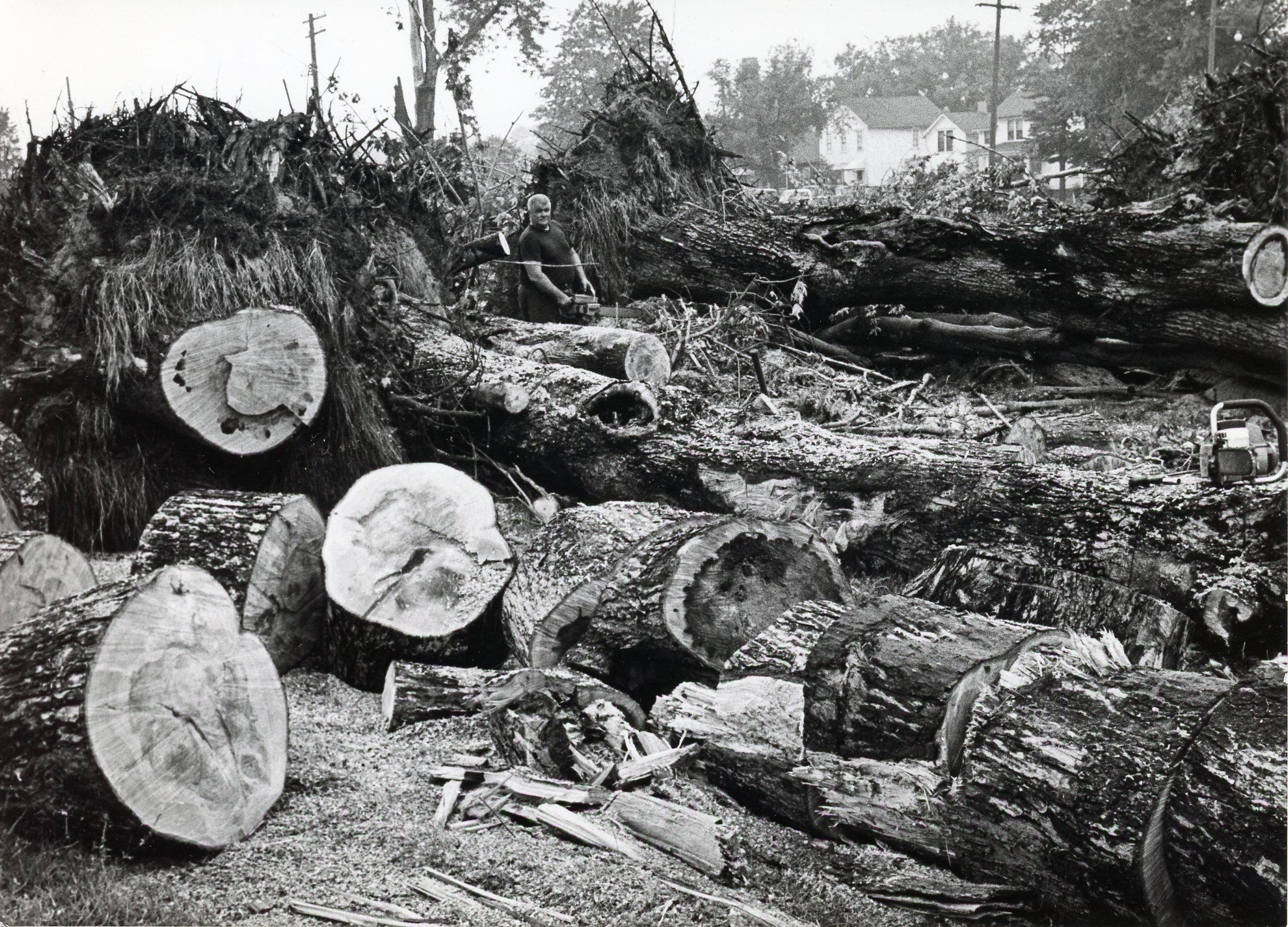 Donald Schufofsky by Cut Down Trees. "Wages of Progress" was the name of the photo. It was taken on Sep. 13,1972 by Lothar E. Konietzko for the "Eagle".