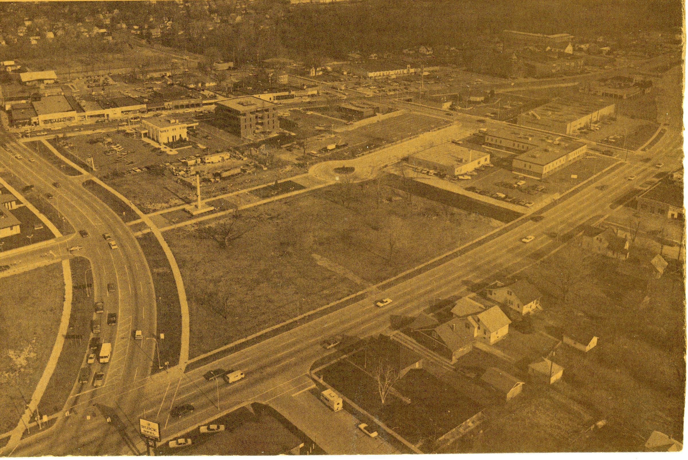 Over Michigan Ave EB and Wayne road looking East. Cleared Urban Renewal Land