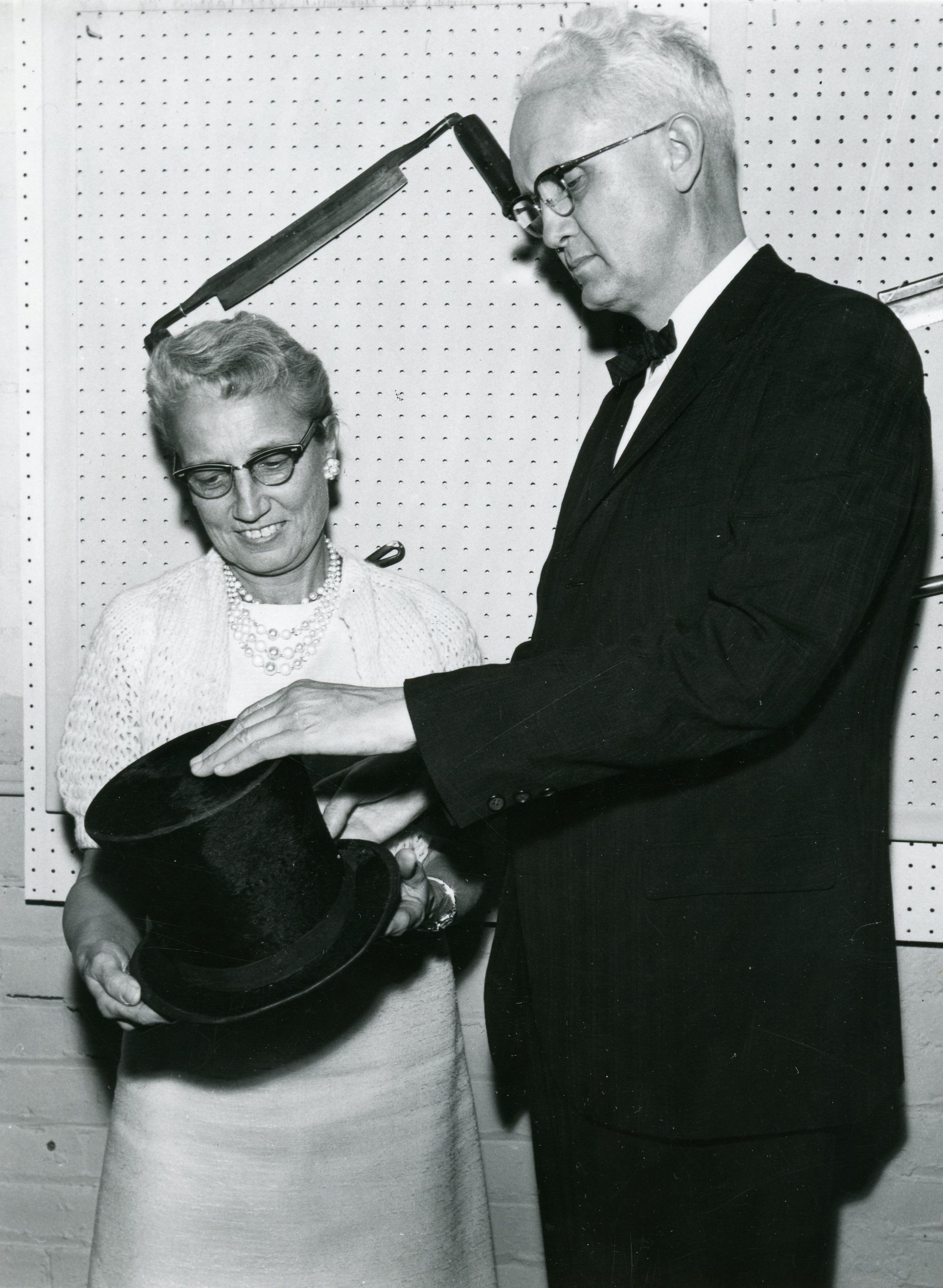 Mrs. C. B. Drew and Rev. Britton. In Historical Museum