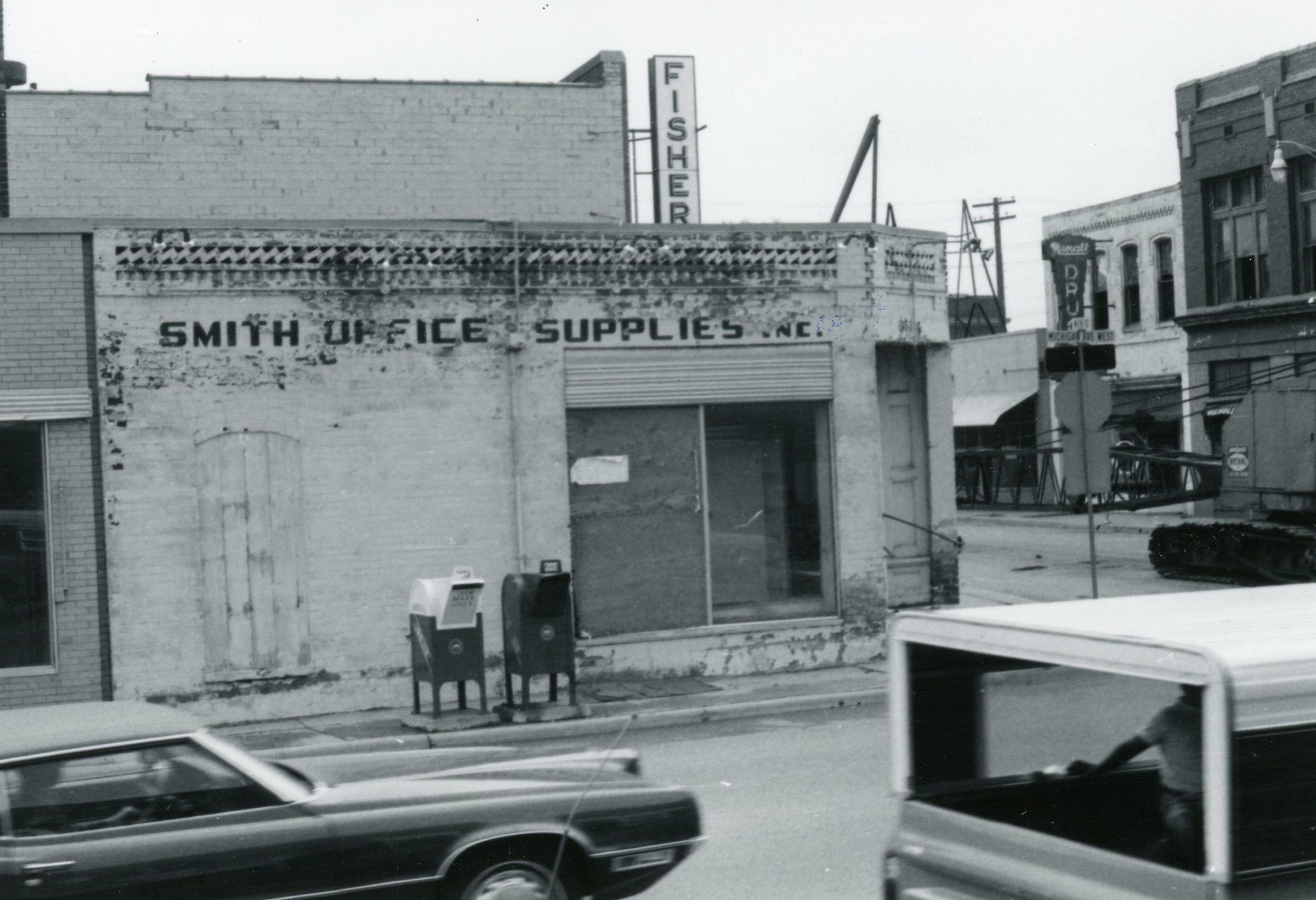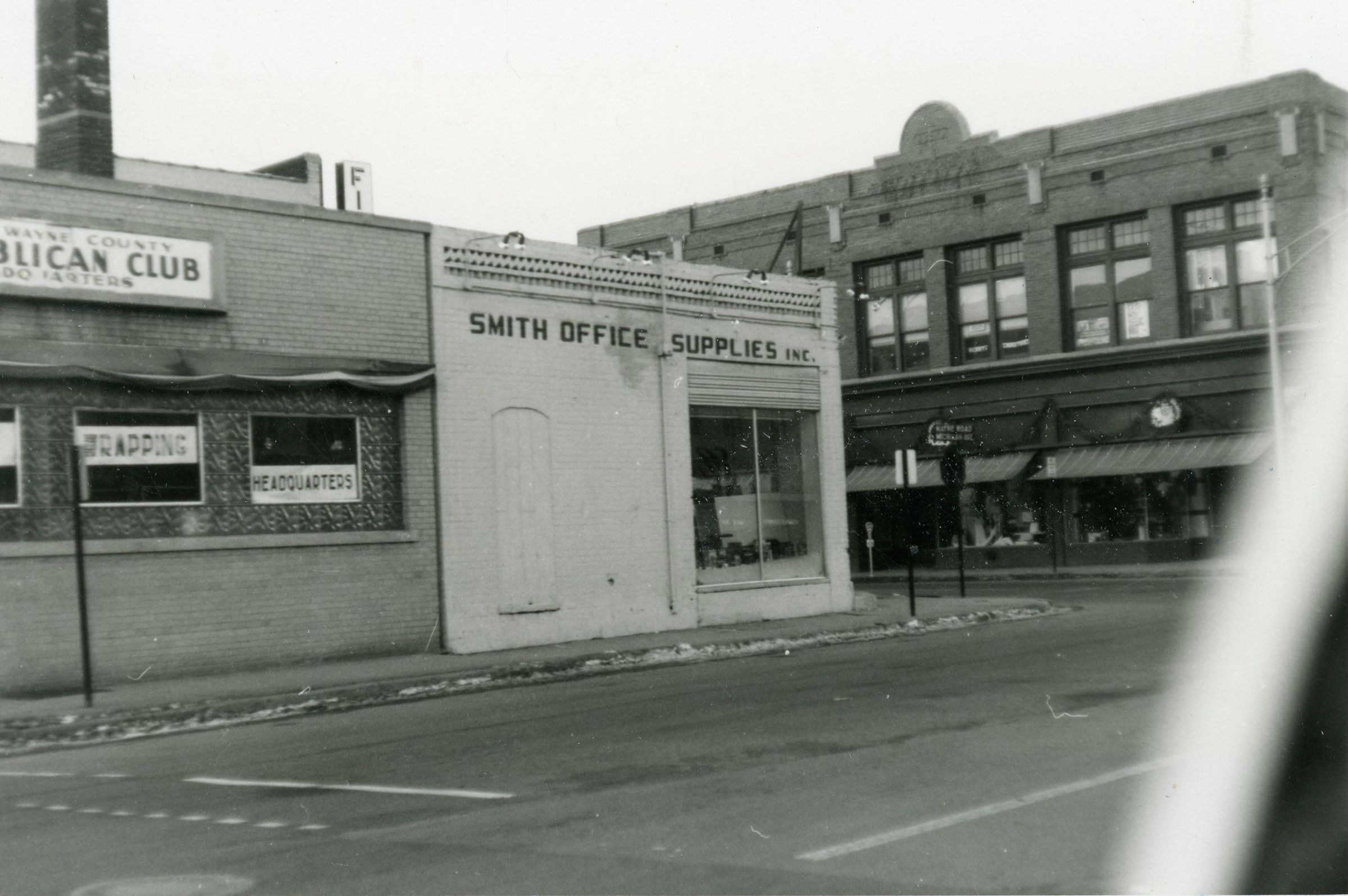 35111 Michigan. SE corner Michigan and Monroe St. Smith Office Supply. Torn down for Urban Renewal.