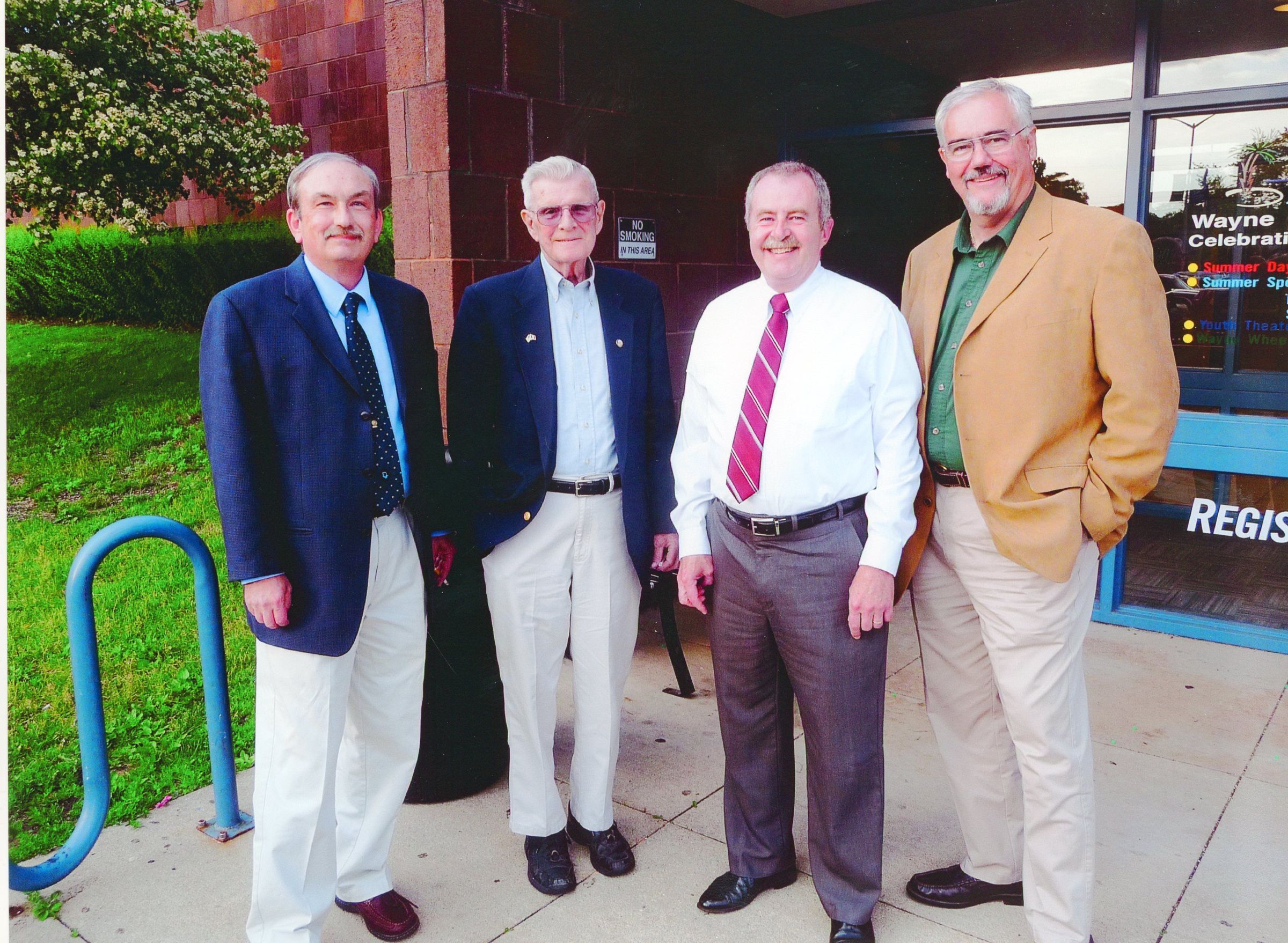 From left: Retired Lieutenant Tom Miller, Former State Representative/Wayne Councilperson Tom Kelly, Retired Sgt. Kevin Woodruff and retired Lt. Christopher John at the Wayne Community Center. Wayne Community Center(now Hype) is at 4635 Howe Rd in Wayne, MI. Photo taken on June 12, 2009Cataloged By