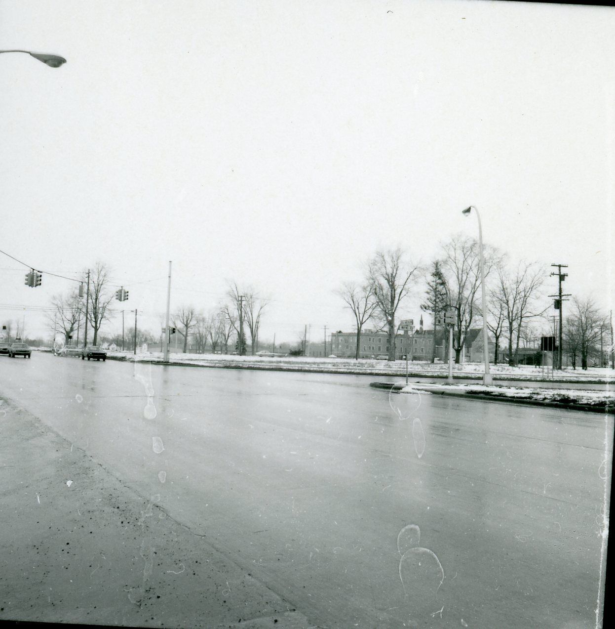 NW corner Michigan Ave EB at Wayne Road. Feb. 1972, just after Urban Renewal. Methodist church visible.