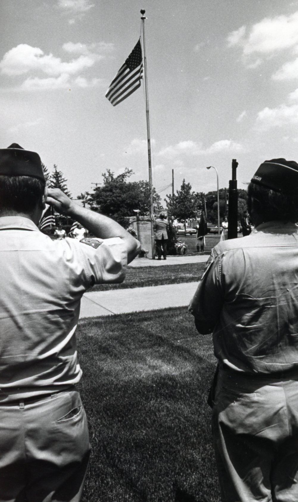 Veterans saluting Flag at Peace Memorial