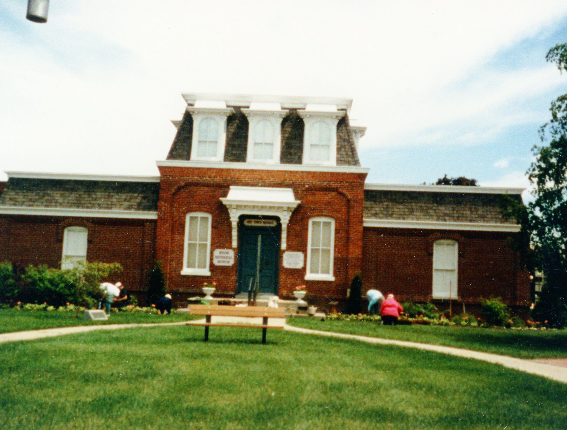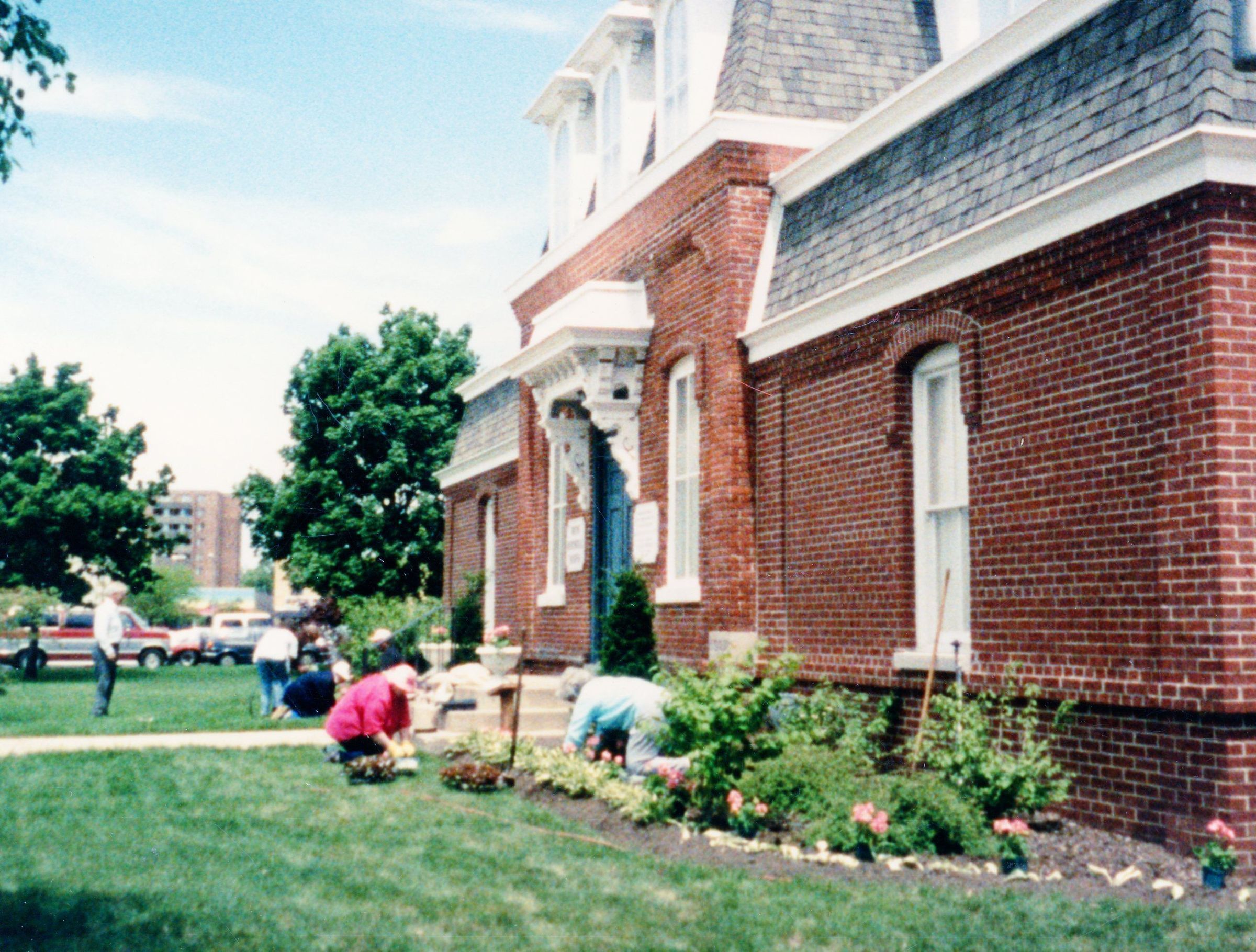 Sharon Author and Betty Young of the Garden Club Members planting flowers in front of Wayne Historical Museum on Tuesday May 24, 1988. Wayne Historical Museum is at 1 Towne Square in Wayne.Cataloged By