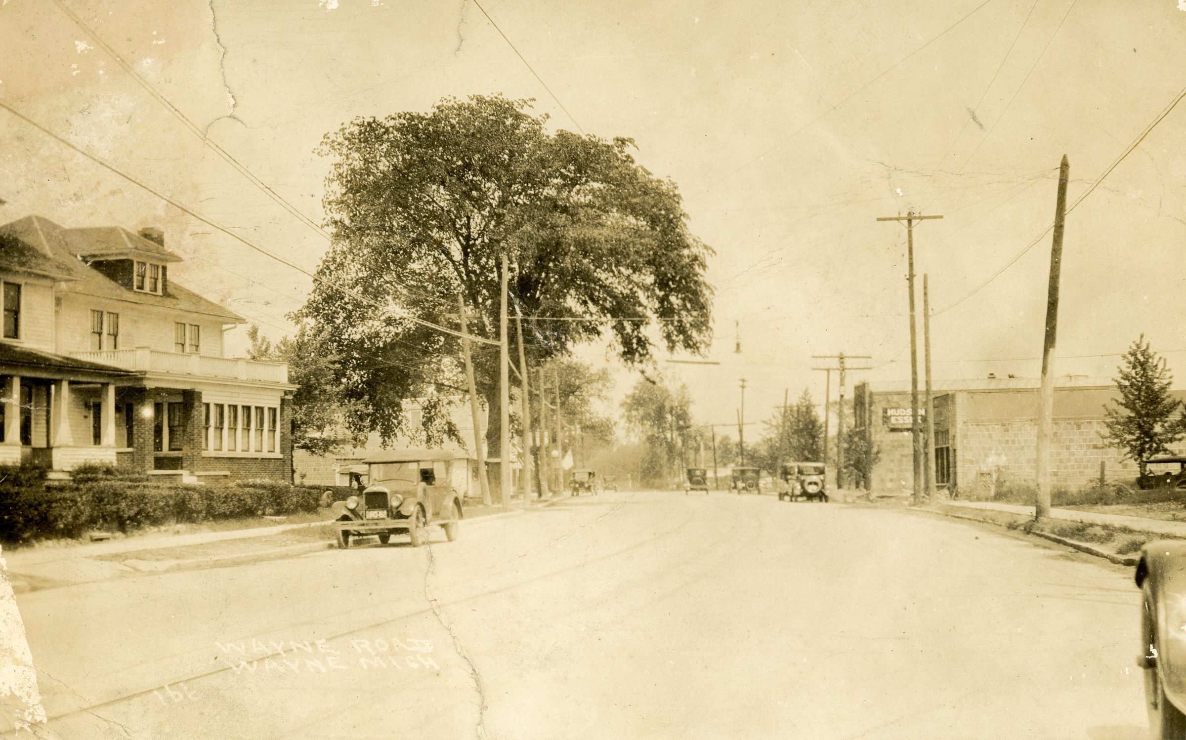 Wayne road looking North towards Chestnut. 1928. House at left is 3006 Wayne road, still survives as of 2025.Cataloged By
