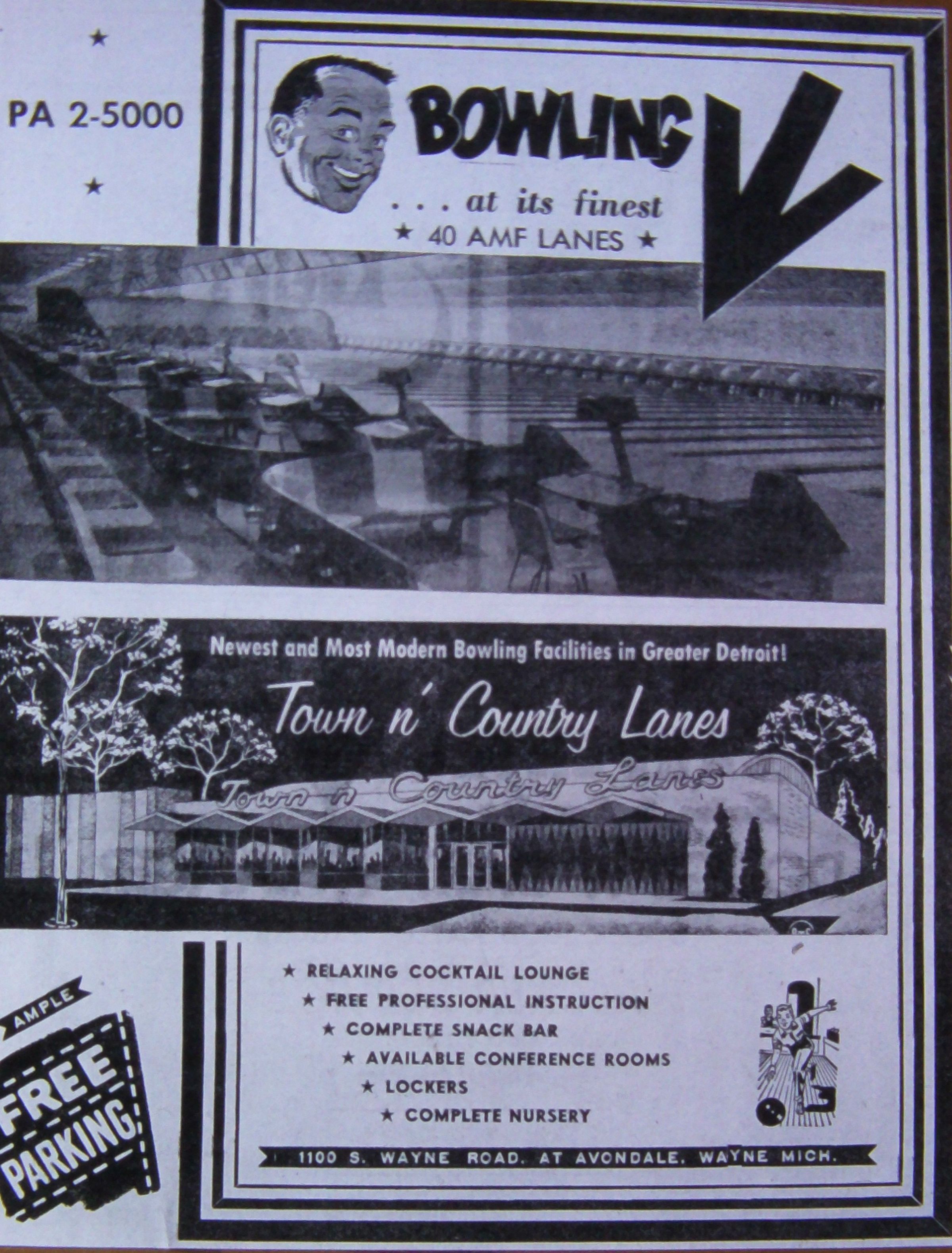 Town n Country Lanes - 1961 advertisement. 1100 S. Wayne road.