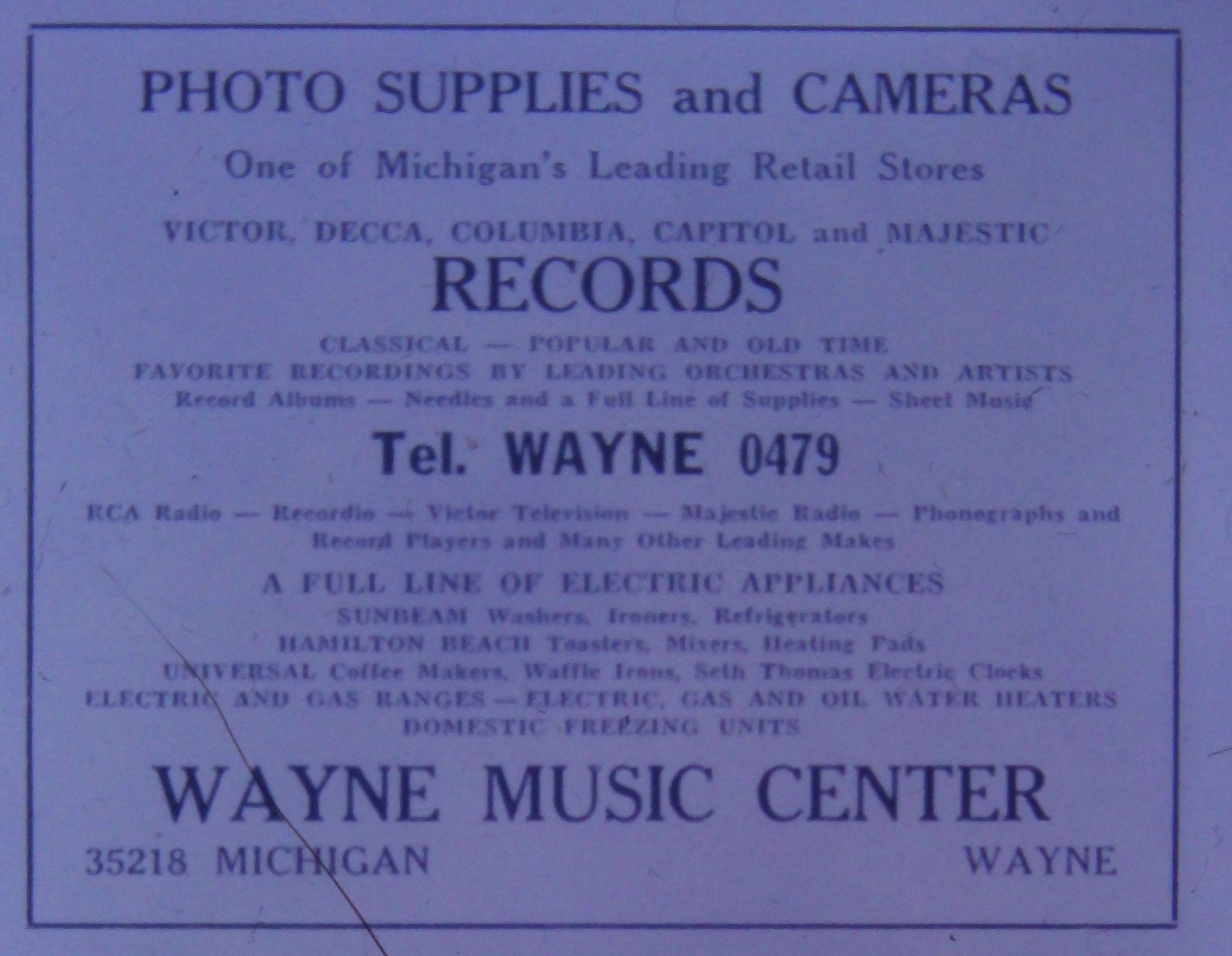 35218 Michigan - Wayne Music Center. Photo supplies and cameras, records, appliances