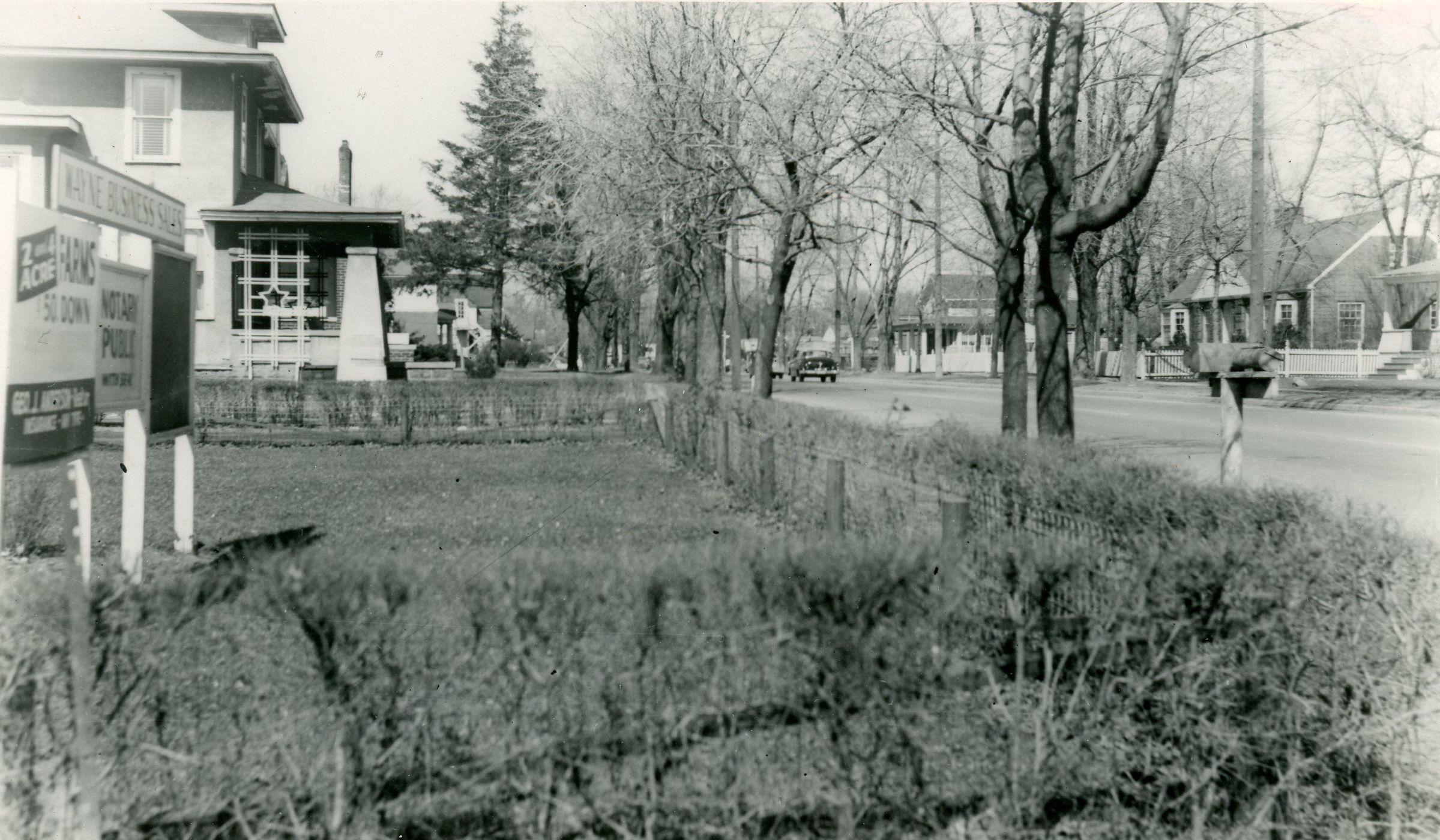 Wayne road at Richard, looking North. NW corner. House at left is 4942 S. Wayne Road. Picture taken prior to sewer installation, March 1952.Cataloged By