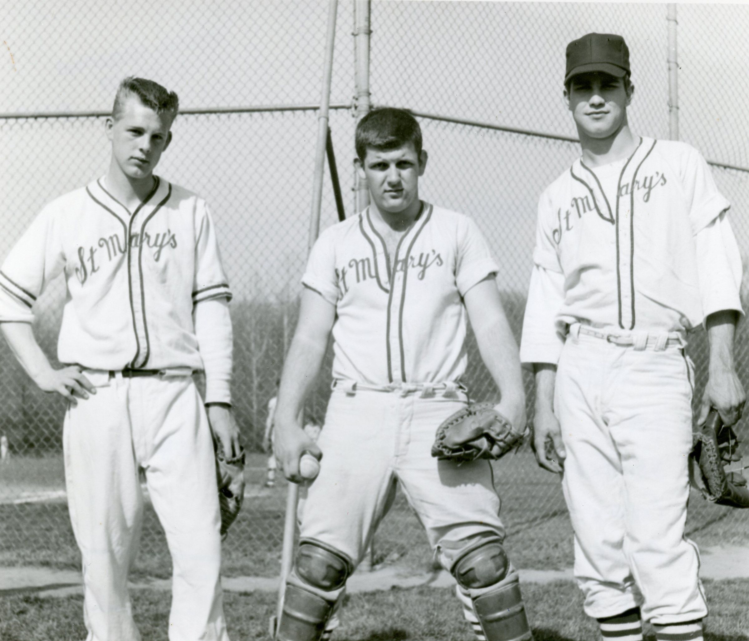 St. Marys Boys Baseball 5-21-1958. (L-R) R. Shaffran - Pitcher, T. Foley - Catcher, F. Croft - Pitcher.