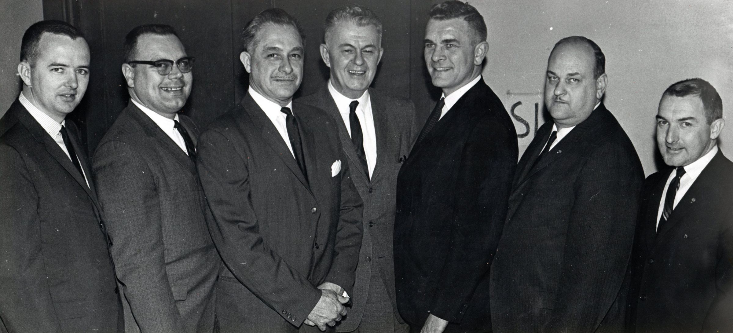 (L-R) Pat Norton, Walt Henke, Norman Martin, Whitney Ballantine, James Attwood, Clarence Woolf, James Guilbault