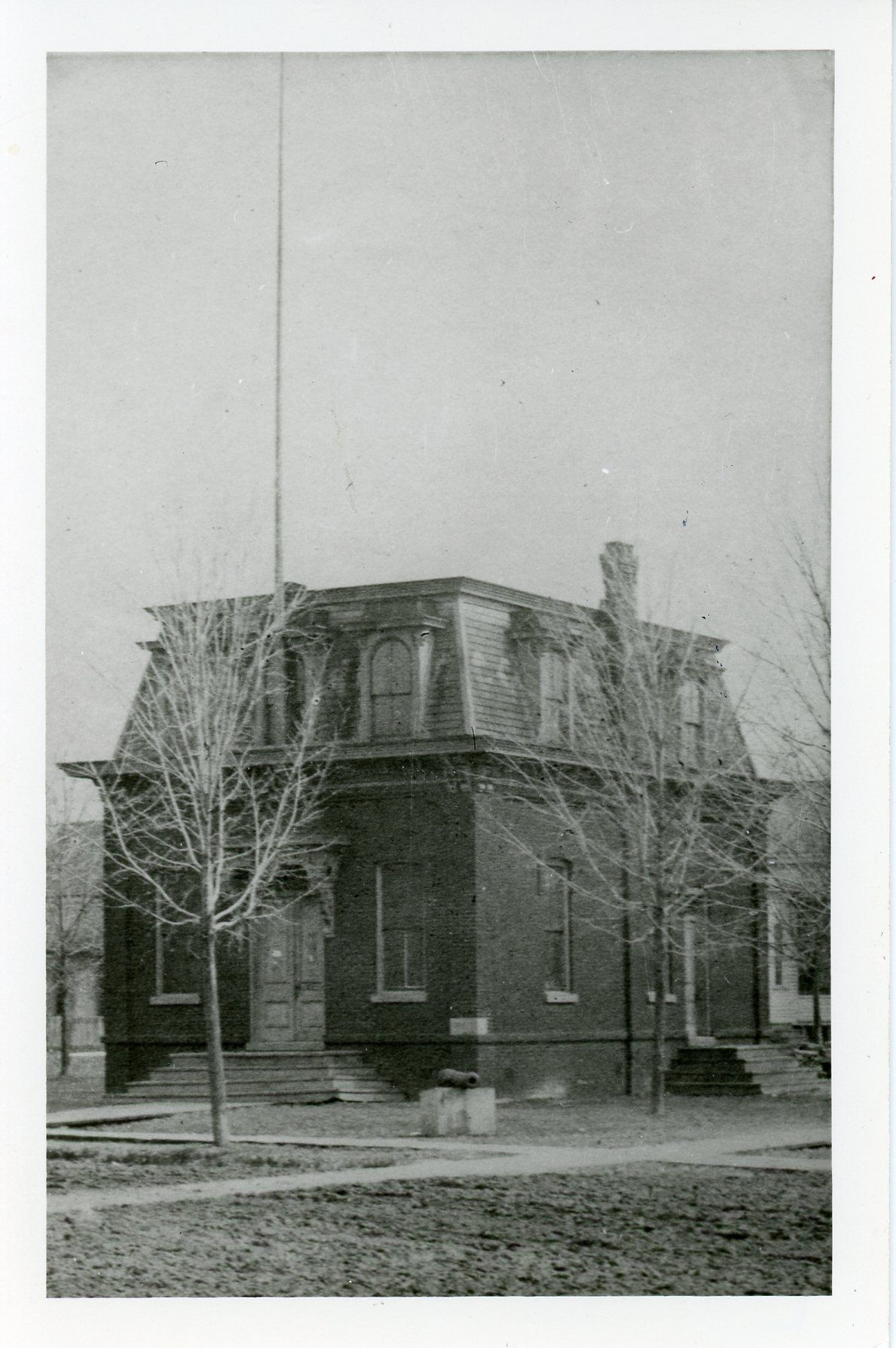 Village Hall early Photo. Note tall flagpole off 2nd story