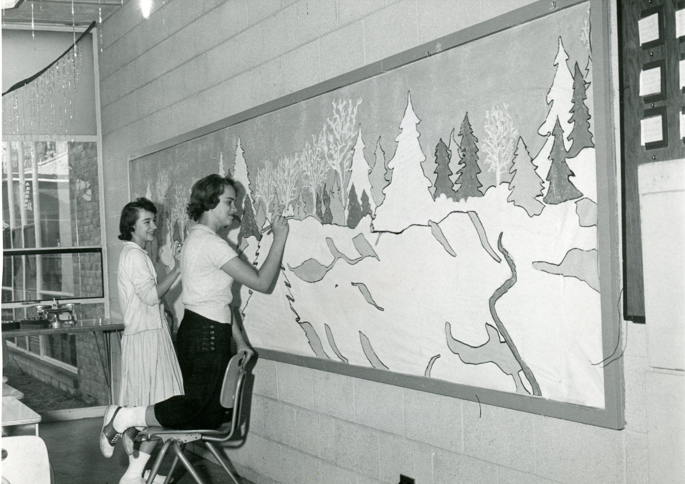 Adams Jr. High. Palmer Road. Joe Robinson 9th grade class. Girls painting a mural.