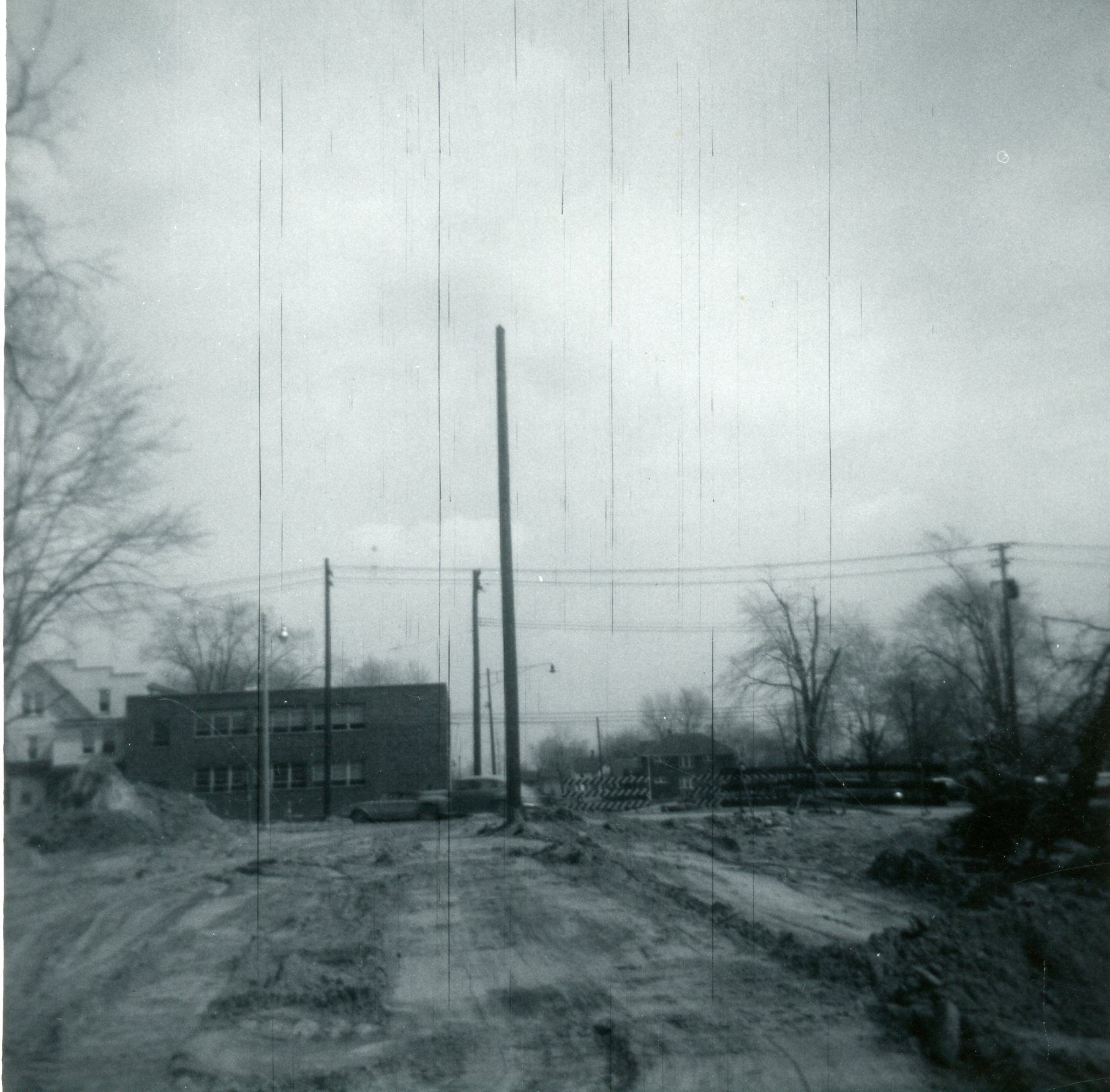 Tearing up Norris, April 1965. Urban Renewal. Looking East. Carpenter Hospital in Background.