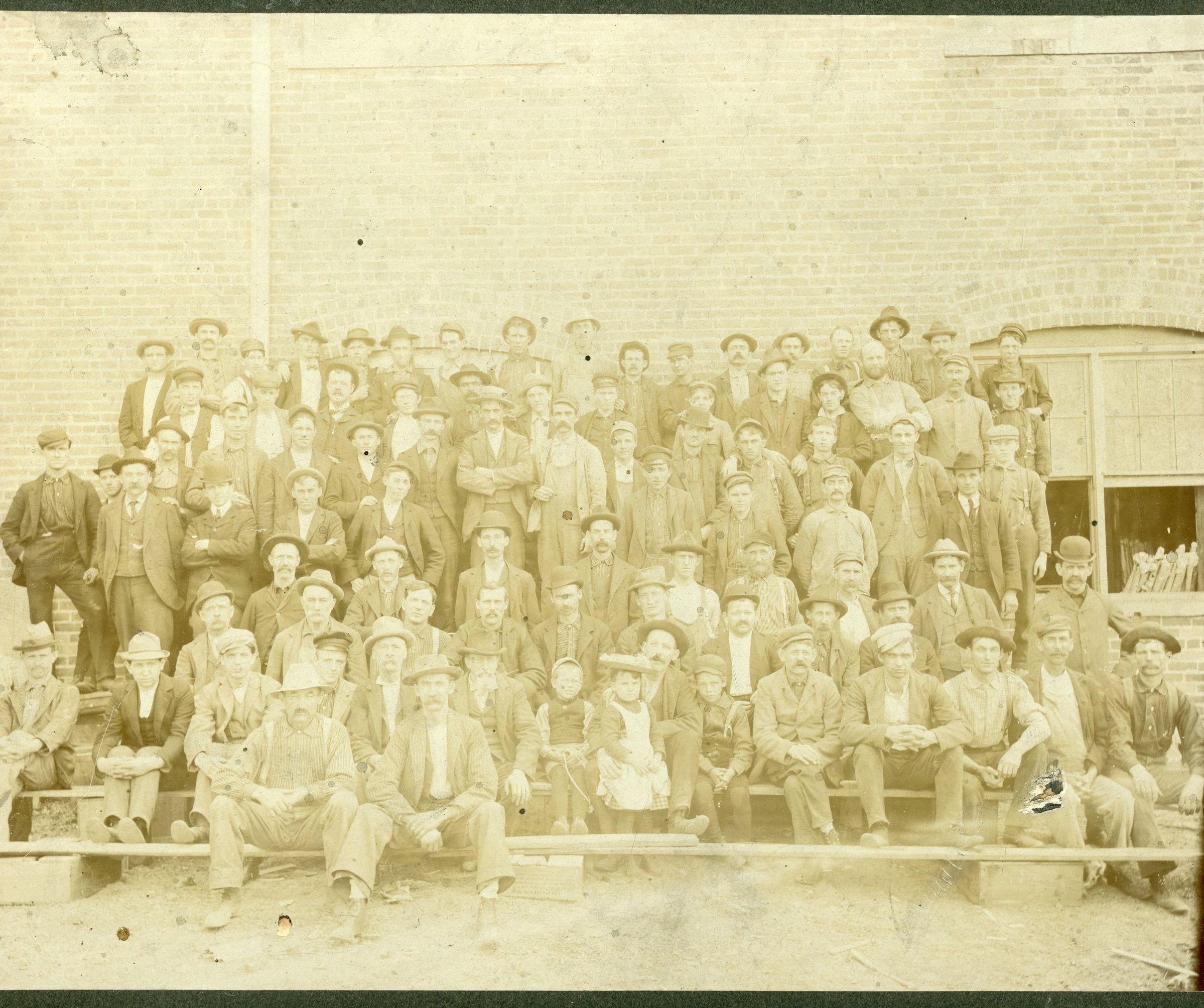 Prouty and Glass Co. Employees. 1st row, L-R: Frank, Mr. Porter, Mr. White, Grant Custer, C. Drew, Orrim Beeman, Ben Marston, unknown, Mr. Slyfield, Fred St. Charles, Jim Ferguson, Will Raymond, unknown, Mr. Harri, Harry, Frank, Harry. 2nd row L-R: Henry Fitzgibbons, Jimmie, Wylis, Will, Orsen, Will, unknown, Forest, Fred, Will Hawley, Don Kelly, John Martin, Willie. 3rd row, L-R: Charlie, unknown, Edd Dowling, Geo. Bell, Floyd, Gus, Gus, Gus, Frank, Clyde, Charlie, Herman, Dick. 4th row, L-R: Viv Vallance, Glen Coy, Alex Simmons, Chas. Hilliar, Will Sanderson, unknown, Luman Cross, Mr. Hayes, Fred Marsh, Will Cameron. 5th row, L-R: Geo Bluett, John Lusk, Jim McDermott, Morgon Lawson, Chas. Kowickie, Edd Wightman, Mr. Cole, unknown, Frank Lee. 6th row, L-R: Henry Winsor, Mr. German, John Kennedy, unknown, Charlie Blackmore, Will Sutliff, unknown, unknown, Mr. Hayes. 7th row, L-R: Frank Sleeper, Frank Wise, Will Smith, Bradshaw Cady, Mr. Holten, Mr. Fowler, Harry Hern, Nellie Hern, Bill Hushion, Luise Armstrong, Phil Dendel, unknown, Al Billings, Will DItch, Mr. Doleskie. 8th row, L-R: Henry Oaks, Bill HannonCataloged By