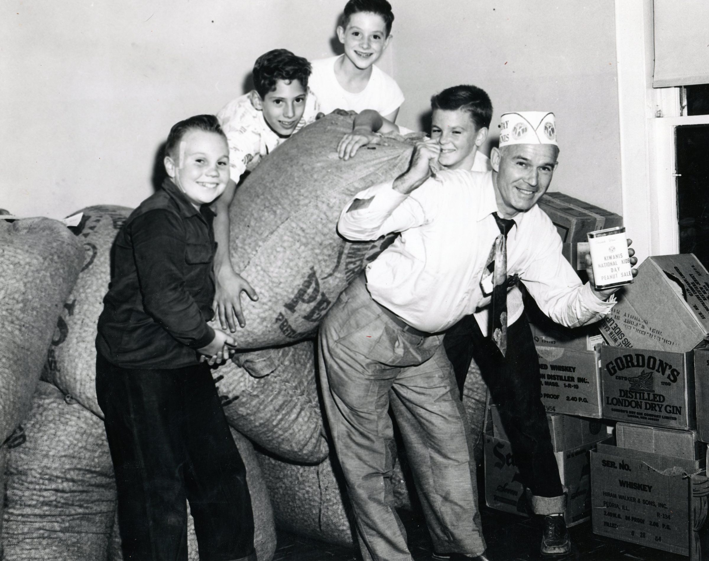 Kids Day Peanut Sale. Children unknown, Clinton Whitney carrying bag
