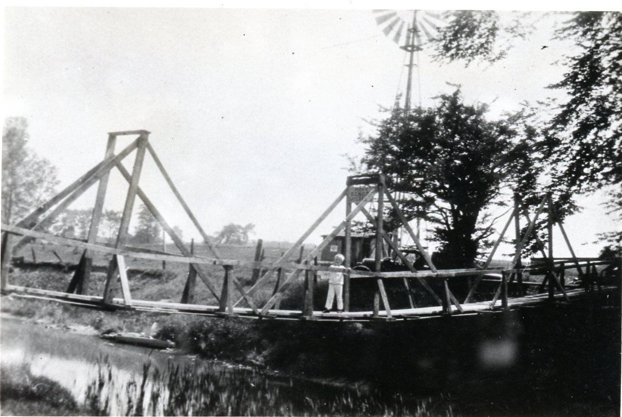 Donald Carpenter on Bridge, 1925. Windmill visible that pumped water into lake