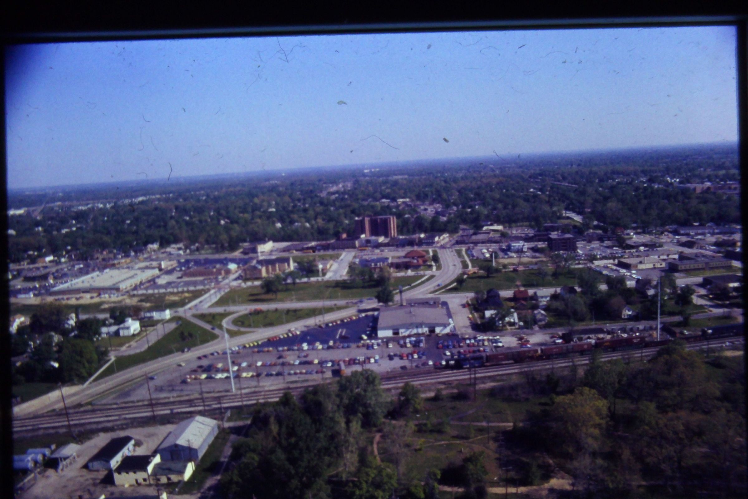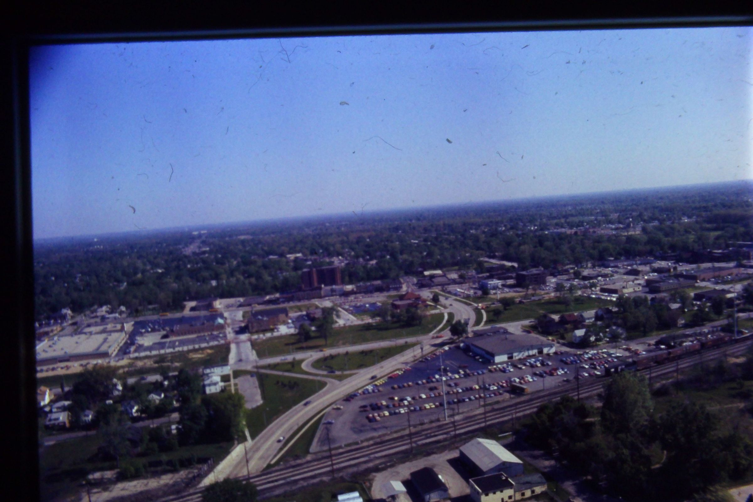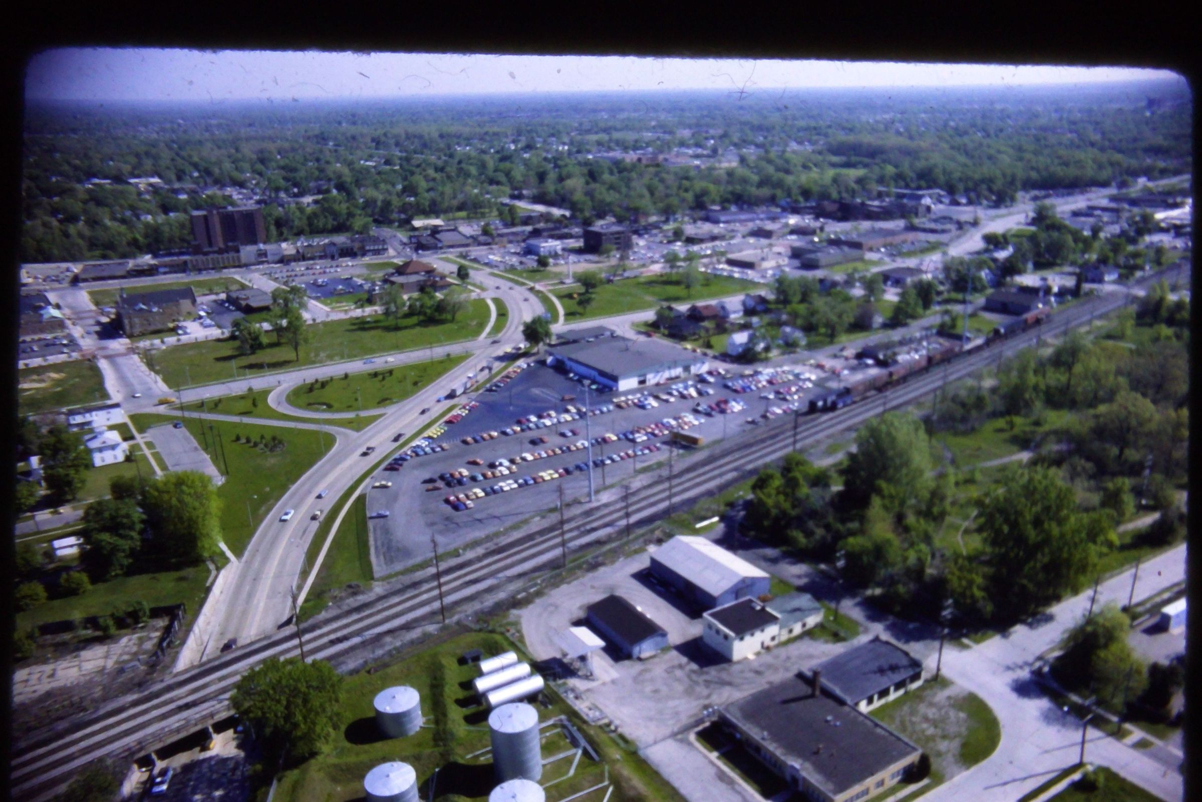 Aerial over Wayne road Curve looking NE. 1970s, post urban renewal.