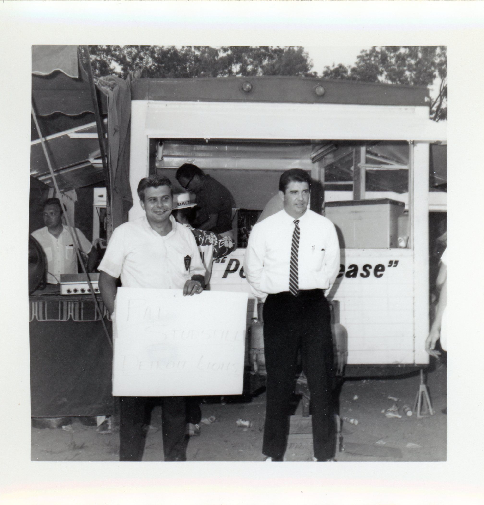 Jaycees put on the Miss Wayne Pageant. Emil Gervais holding sign