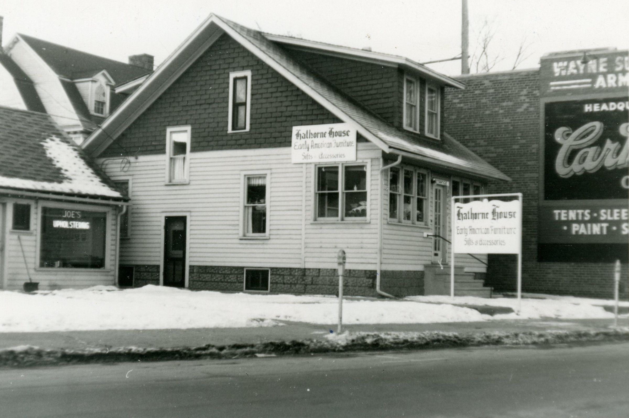 34635 and 34643 Michigan - Joes Upholstering, Hathorne House Home Furniture. South side of Michigan between 2nd and 3rd. Rear of Hosie house in background. Torn down for Urban RenewalCataloged By