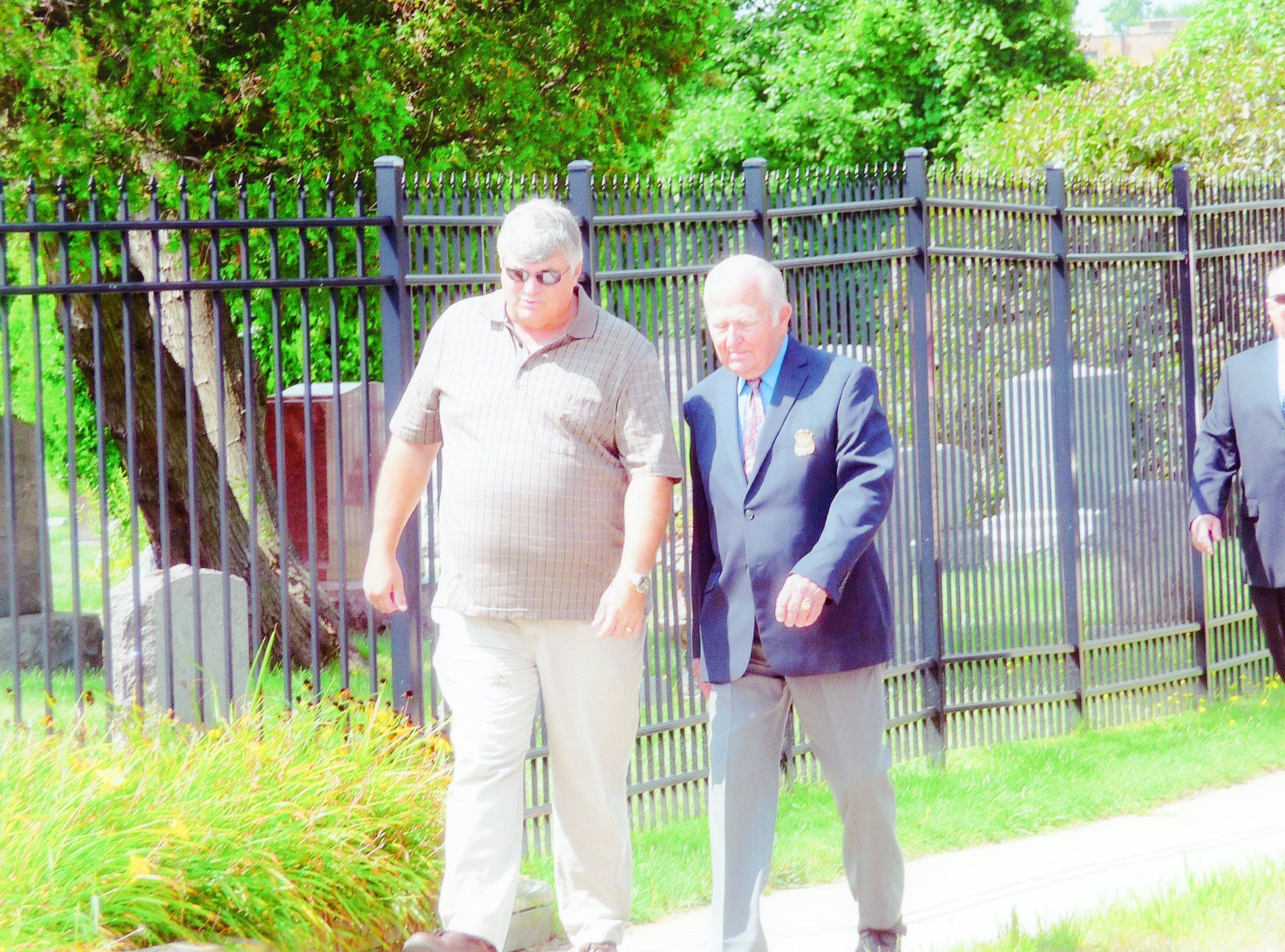 Retired Wayne Police Officers (from left) Deputy Chief Kerry Webb and Retired Lieutenant Harold Meldrum on Aug 24, 2010. They are in front of Glenwood Cemetery on 33510 Glenwood St, Wayne, MI.Cataloged By