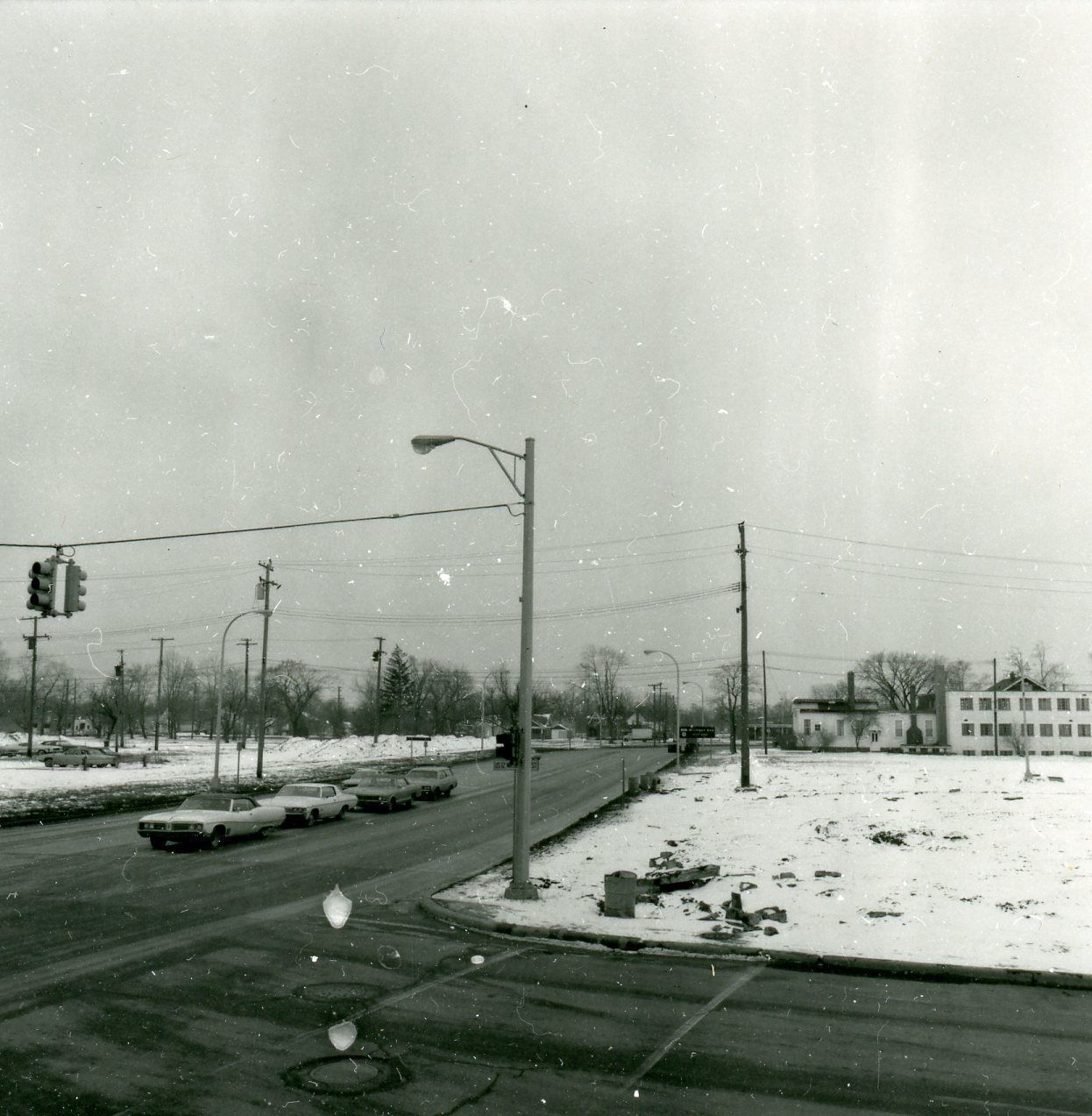 Michigan At Wayne road looking S. Congregational Church at right. Feb. 1972, just after Urban Renewal.