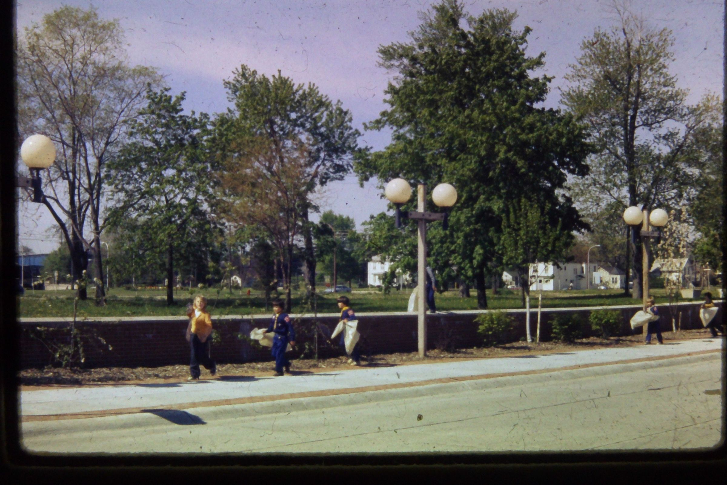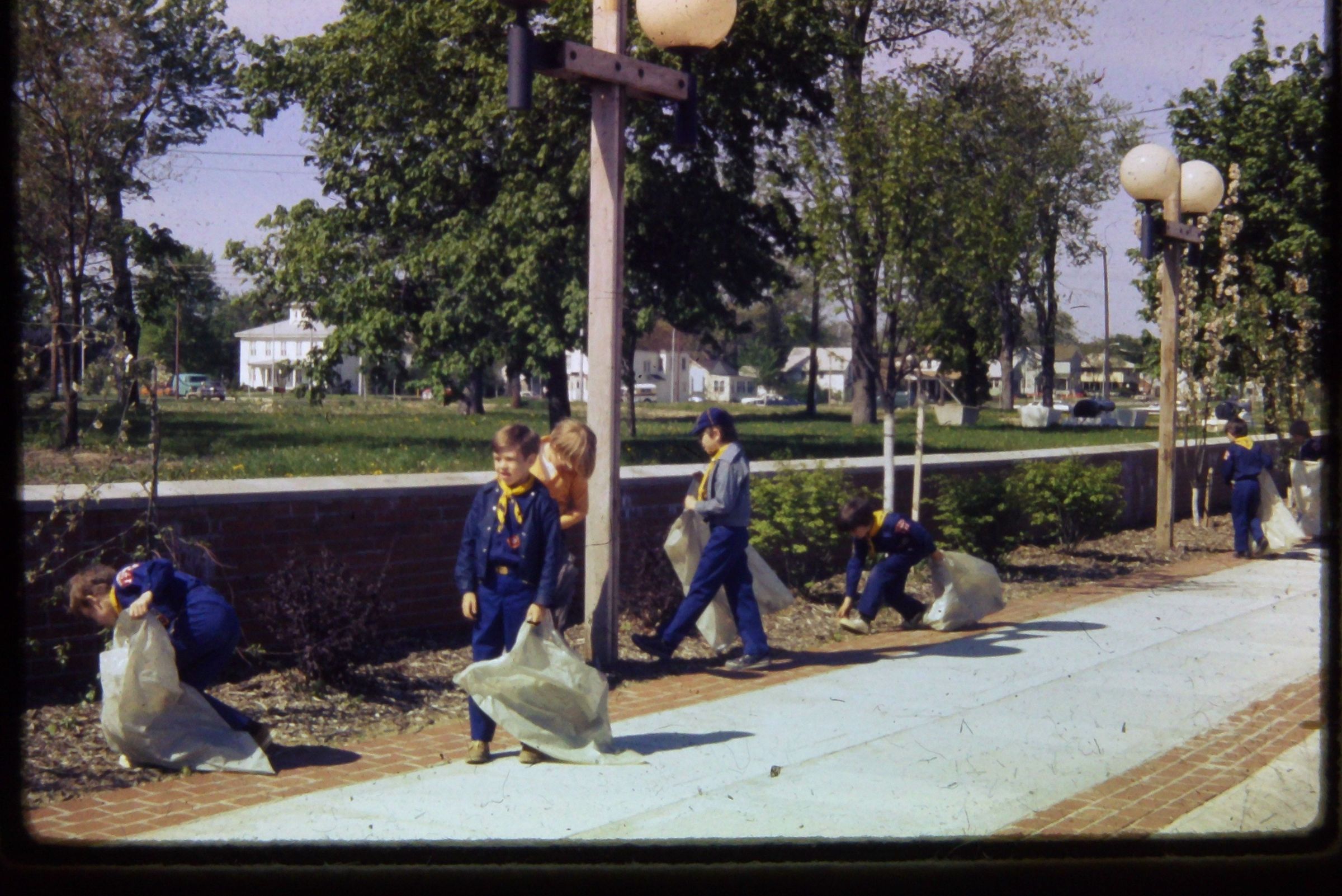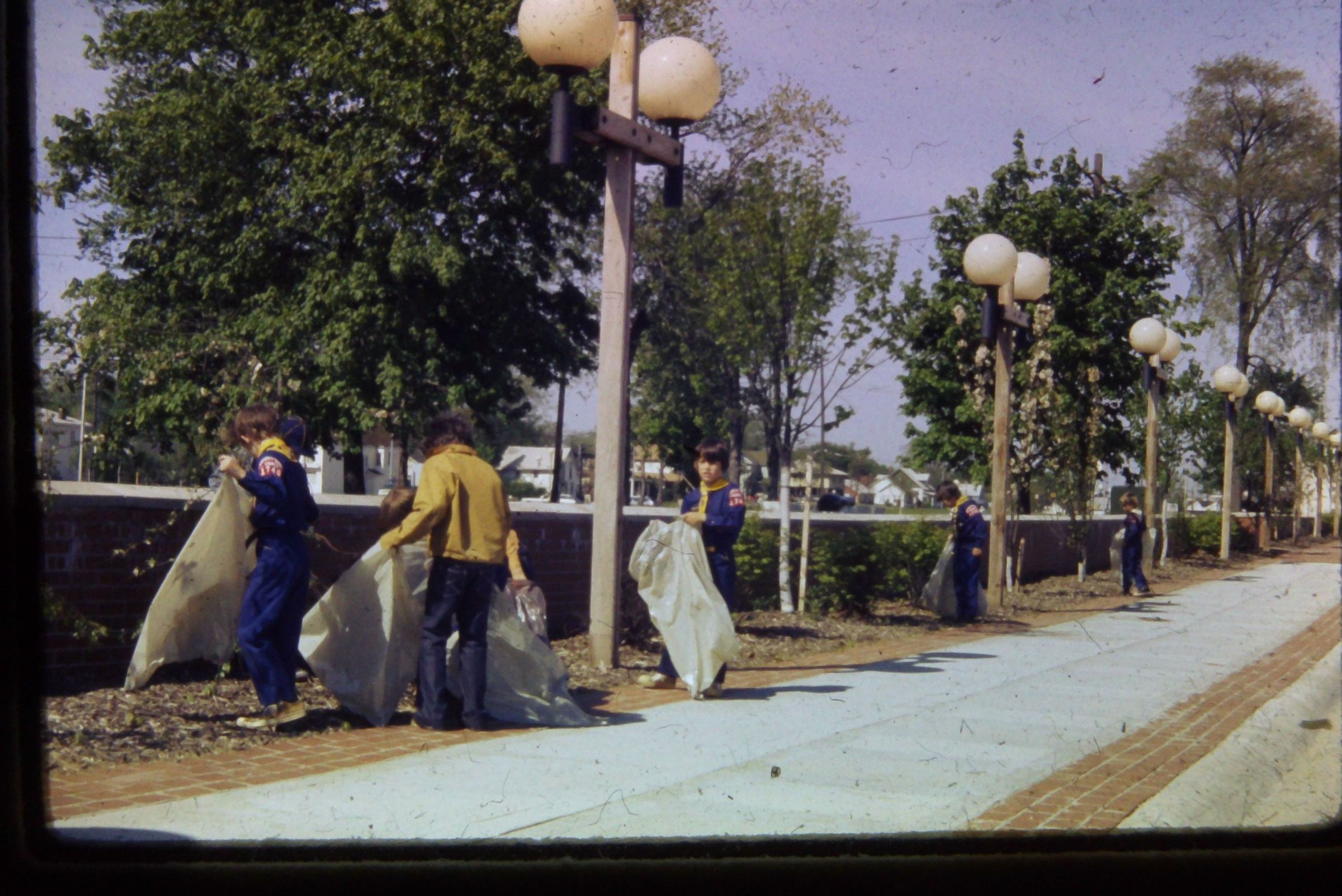 Boy Scouts cleaning up along Main Street, 1974. Post urban renewal