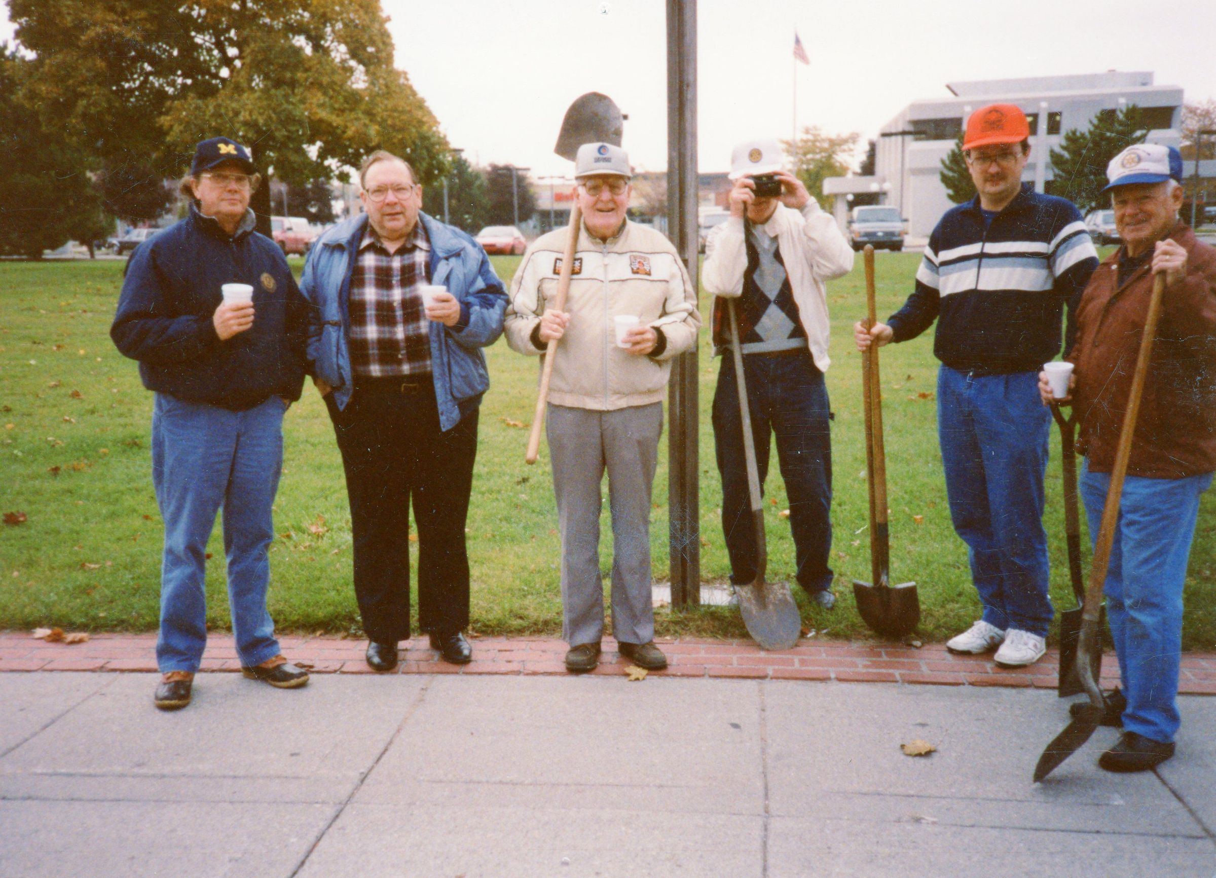 1992 tree planting on Wayne Road. Bob Medlyn, Don Ruark, Miles Dietrich, Hank Goudy, Don Smith, Ron Stratton