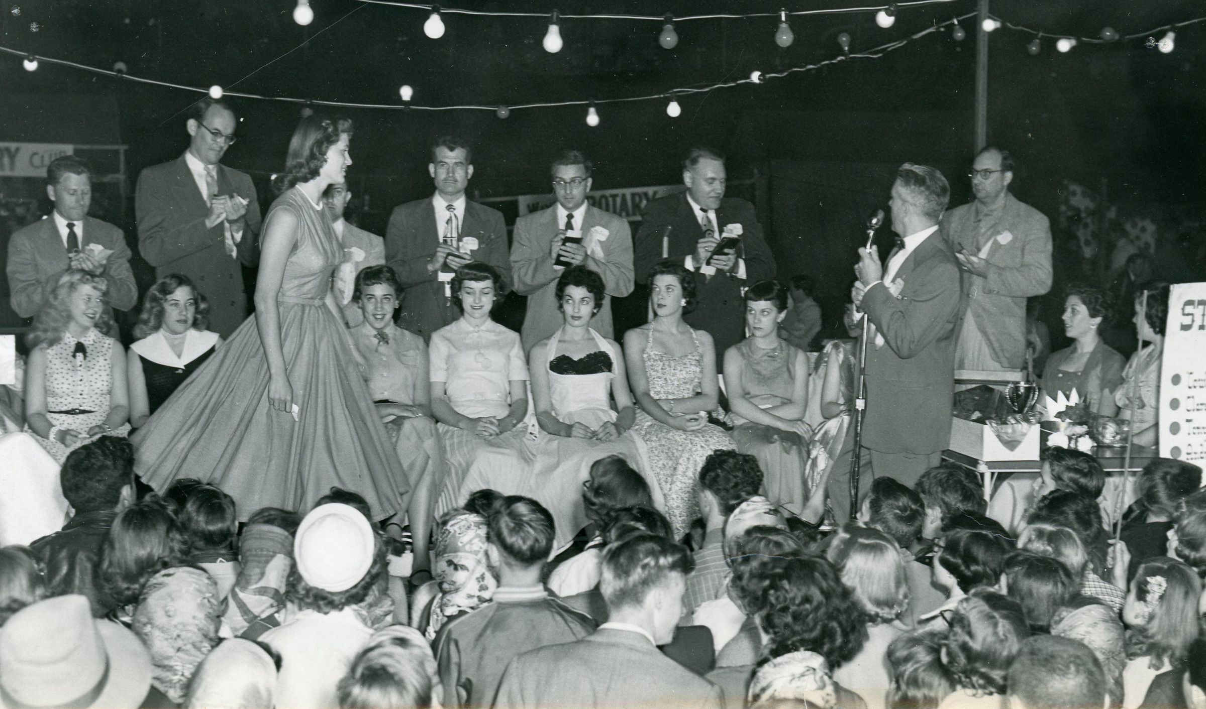 Judging the Queen. A Beauty Pageant being put on by Rotary Club.