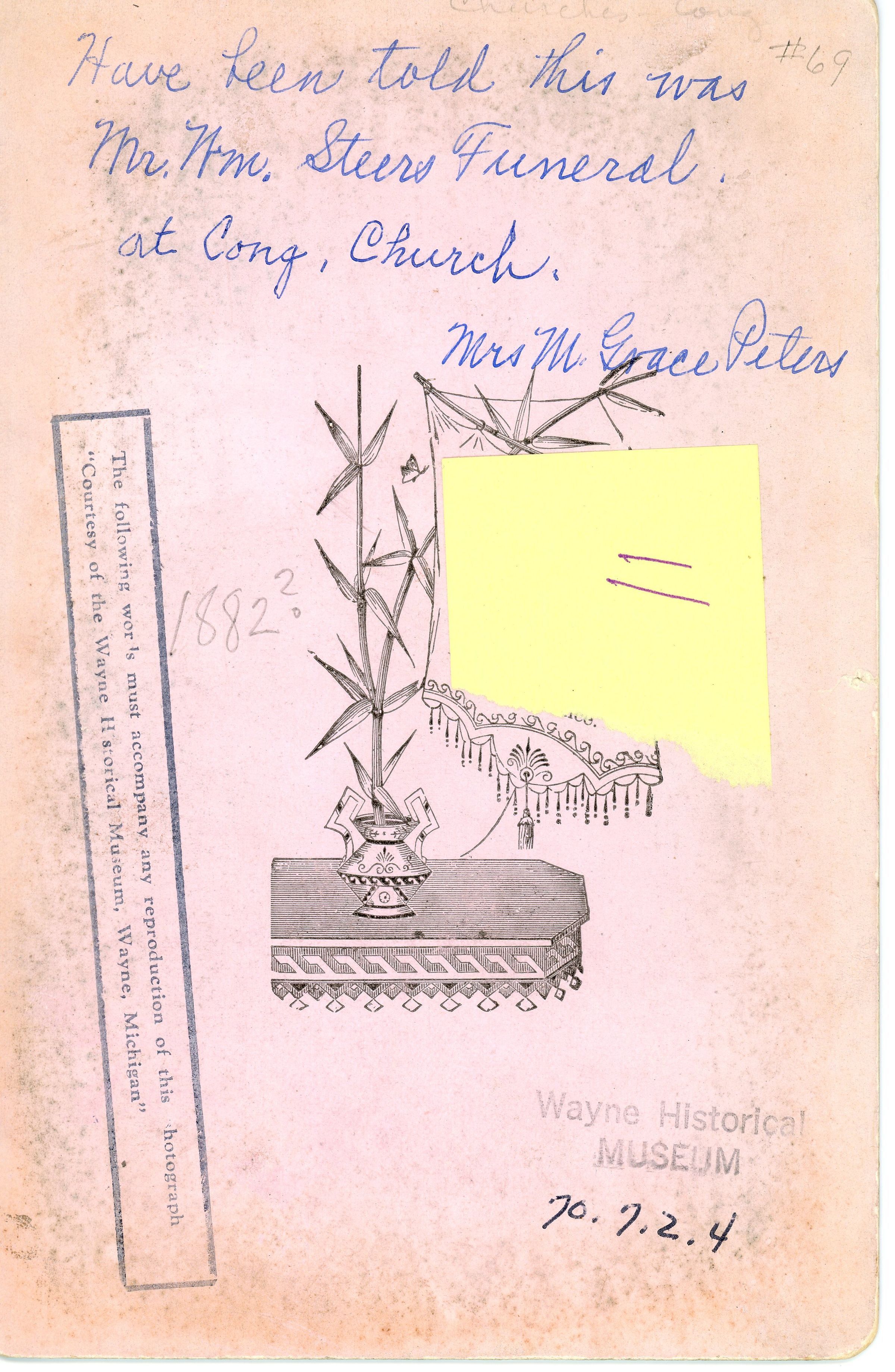 Wm Steers Funeral at Congregational Church, potentially in 1882