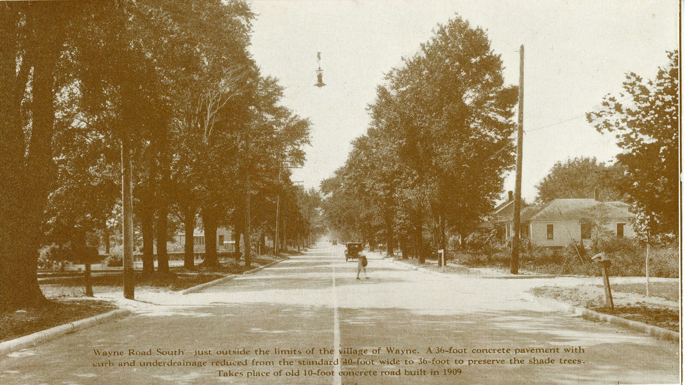 S. Wayne road, 36 foot wide pavement to preserve shade trees. Unknown exact location.