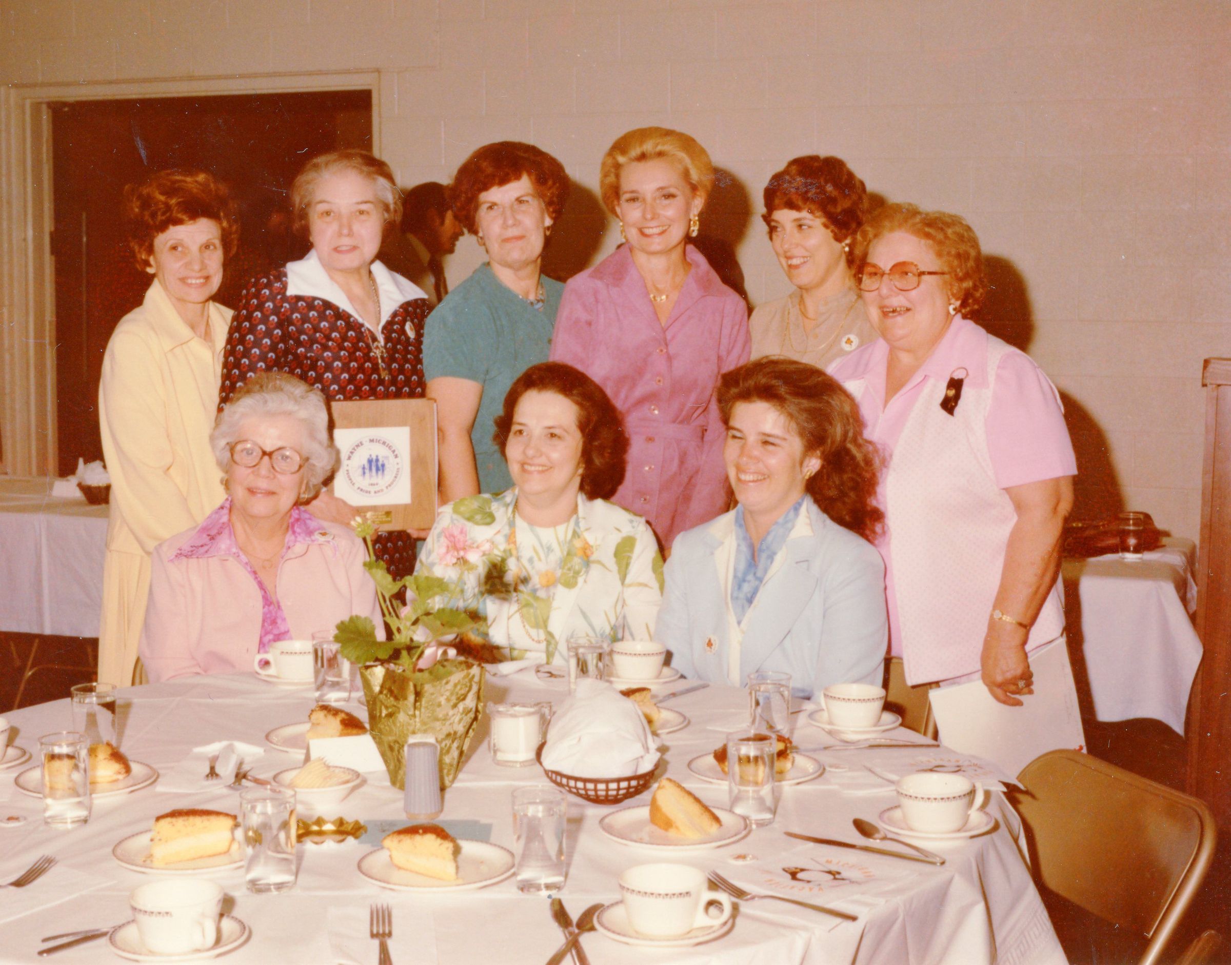 Soroptimists. Back Row: Murial Cooper, Mildred Hanchett, Claynell Wheatley, Dally Cole, Donna Willett, Bea Worland. Seated: Janet Cooper, Unknown, Donna McEachern. This possibly might be a mayors day lunch.Cataloged By