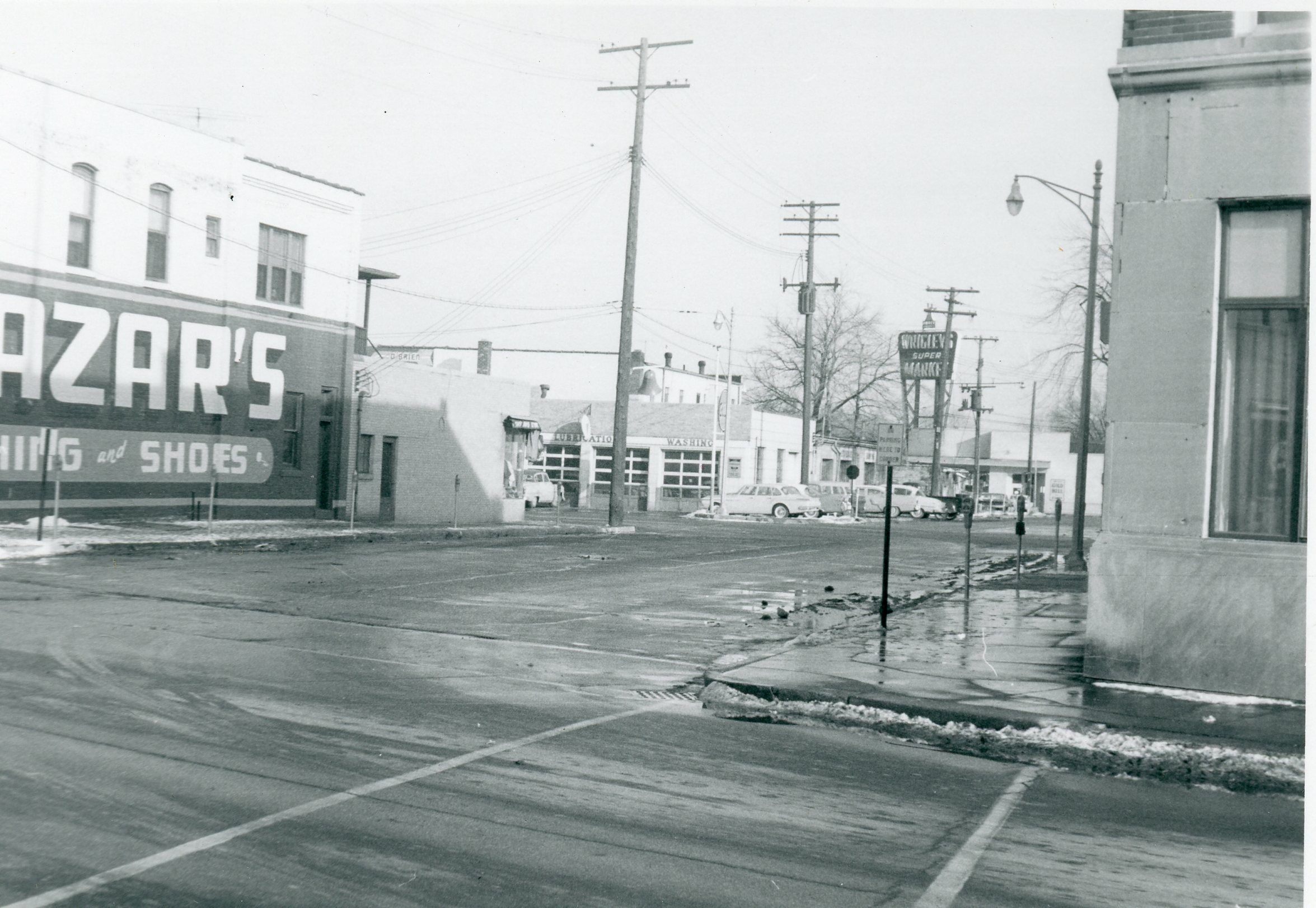 Park at Monroe Looking East. Lazars on left, Masonic building at right.