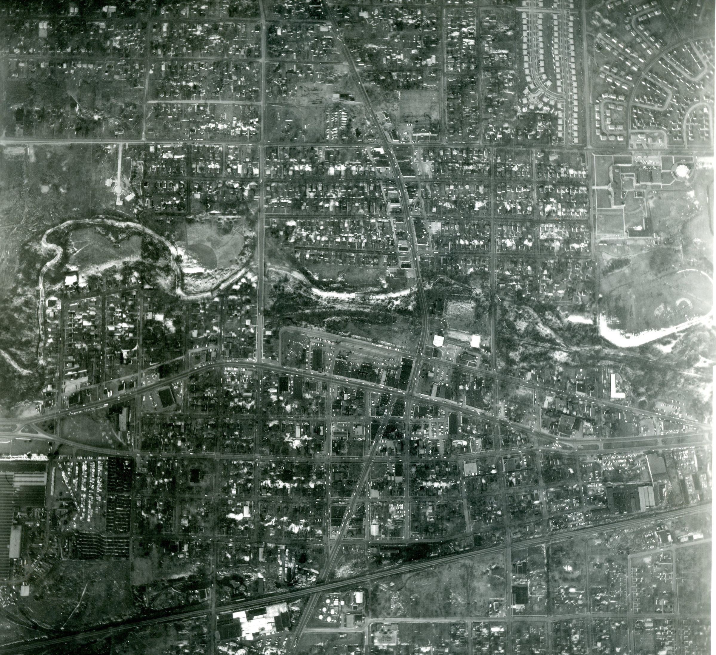 Over Downtown and area north. Glenwood rd at top 1/3 of picture. WMHS at far right.
