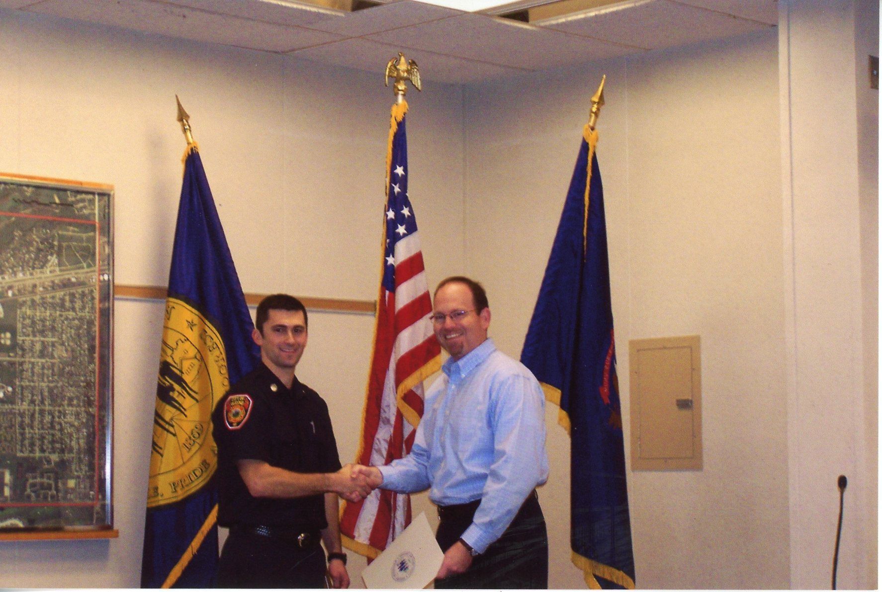 Firefighter Nick Winrow being sworn in by Matthew Miller City of Wayne Clerk. . Pic taken in 2011.Cataloged By
