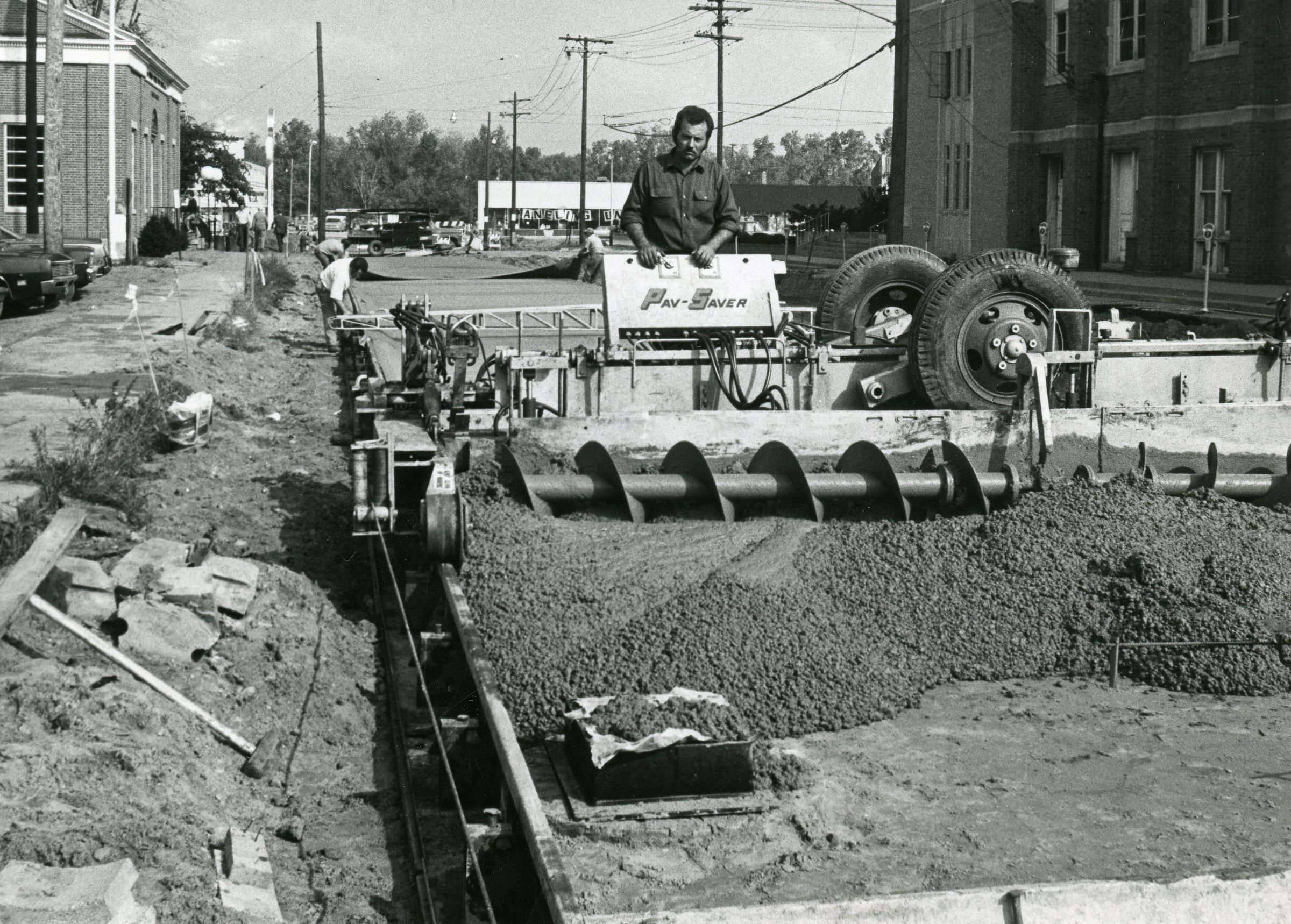 Paving Newberry Street. Post office on left, Methodist Church on Right