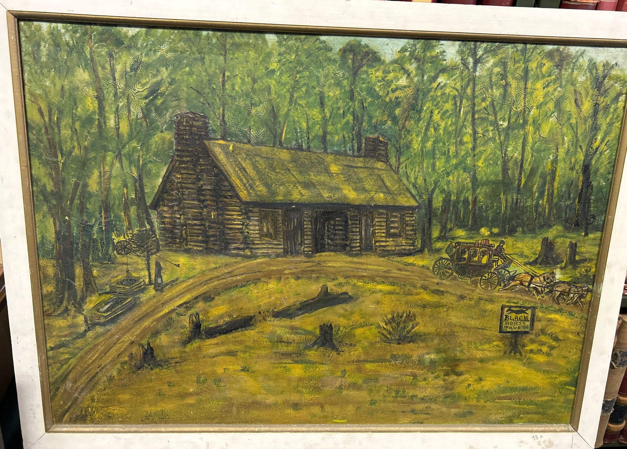 Oil painting 32 inch by 43 inch of second co. House Black Horse Tavern at Eloise Michigan