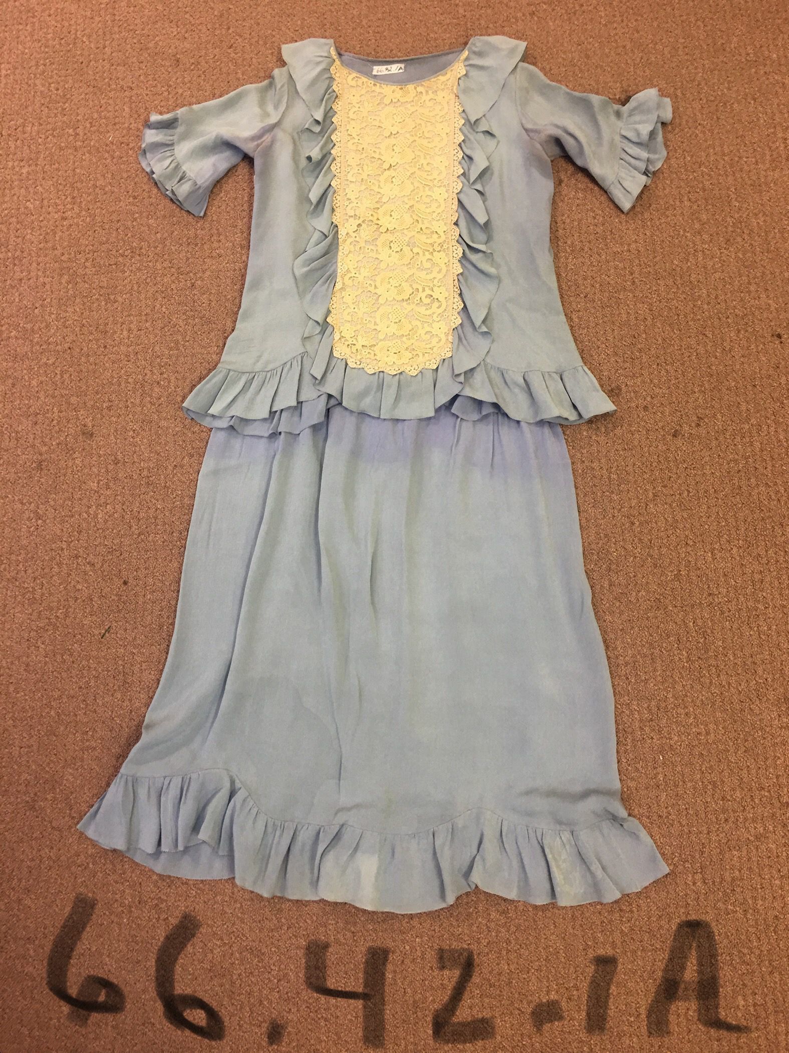 Worn by Anna Cady at her marriage to Nelson Butler, Dress was worn with matching blue stockings.