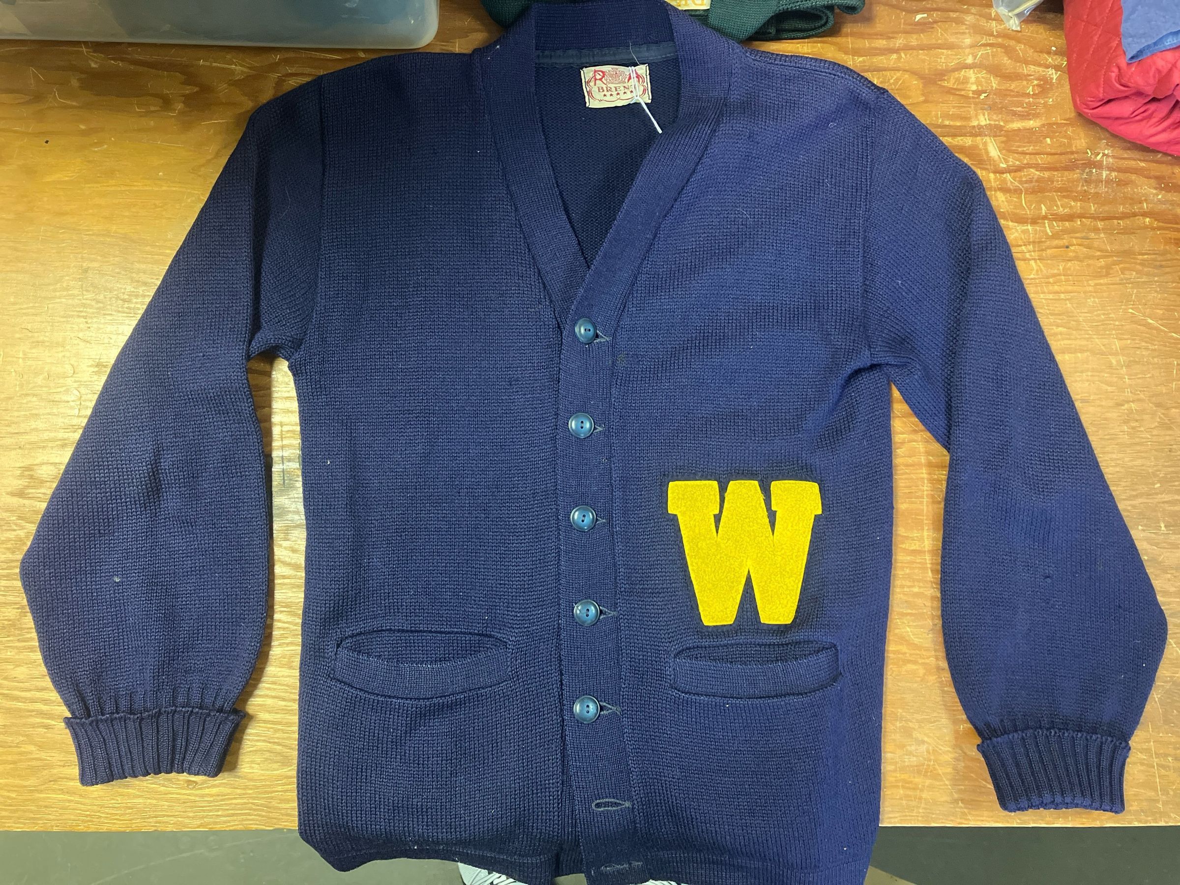 Ron Angrive owned WMHS class of 1955 Blue varsity Sweater.