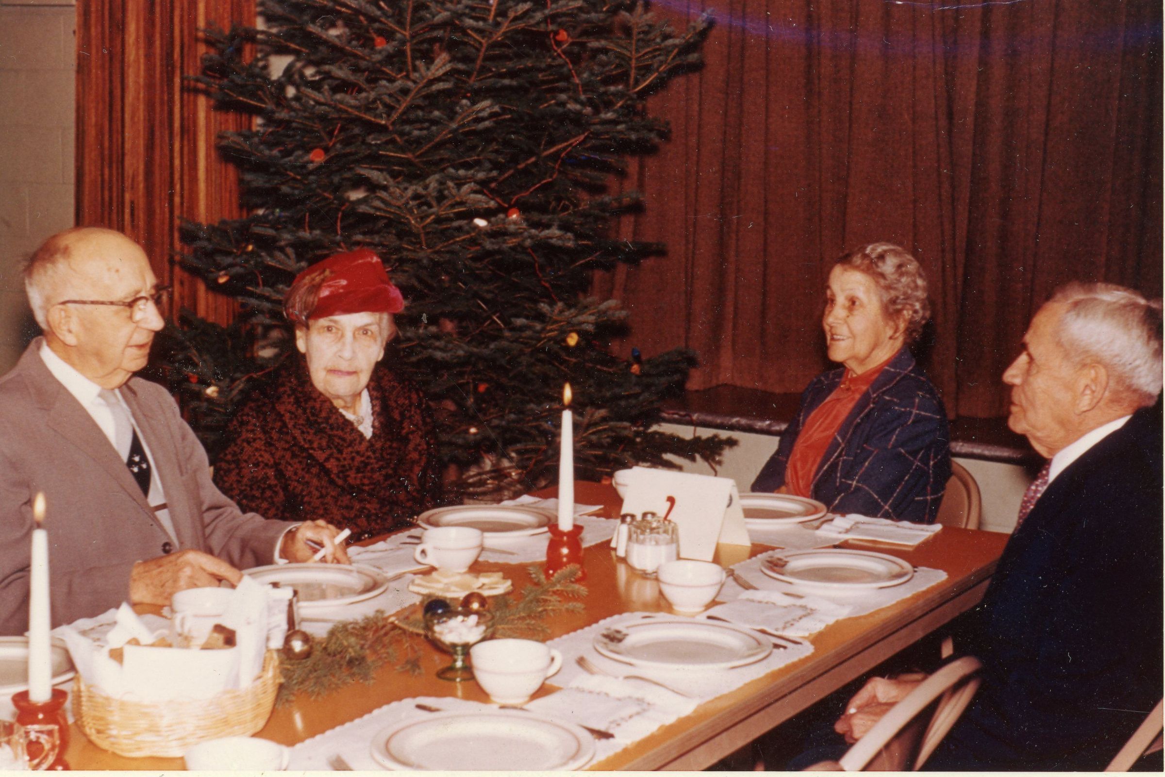 Annual Smorgasboard, 1950s. Clyde Maben, Estelle Bunting, Mrs. Charles Handeyside, Mr. (Mildred) Handyside