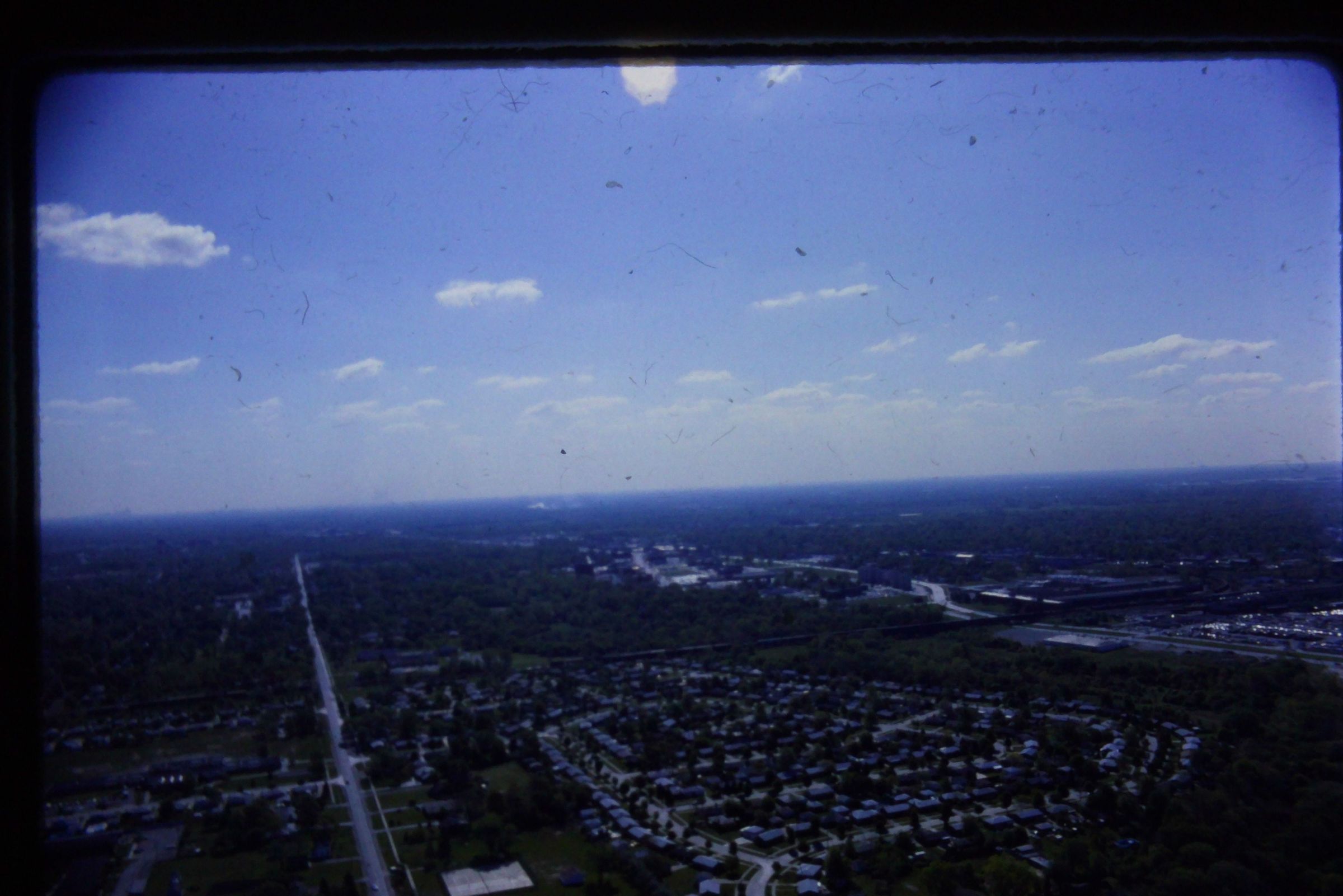 Aerial over Glenwood Road, looking East. 1977. Ford plant at middle right