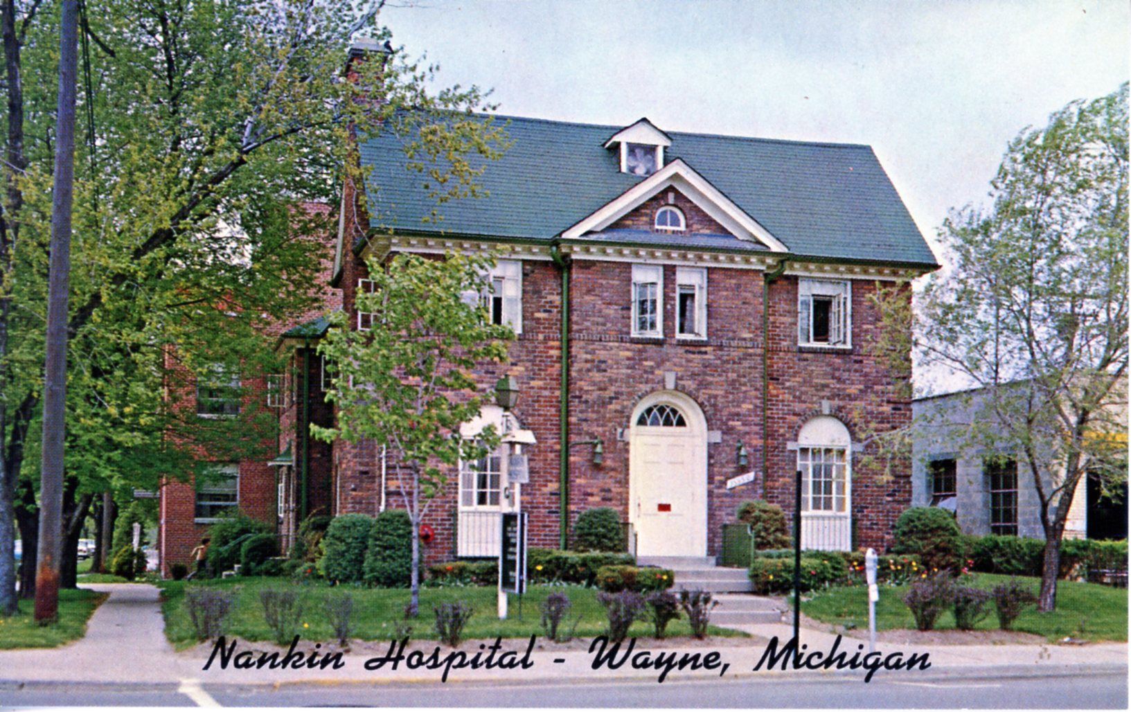 A post card of Nankin Hospital, built in 1932, burned 2004. 35550 Michigan Avenue. Originally the Caraway Huff Clinic on NE corner of Mich Ave & Sophia. Opened about 1931. Turned into Nankin Hospital. Burned down in 2004.Cataloged By